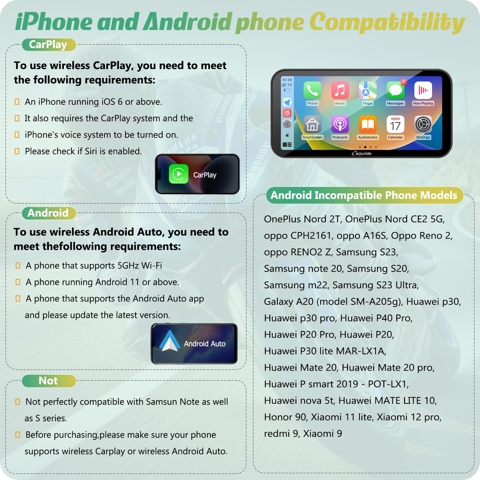 【Wireless CarPlay and Android Auto for Motorcycles】Say goodbye to distractions and stay focused on the road. Connect your phonewirelessly to the carpuride w603d via CarPlay or Android Auto. This integration allows you to access important phone features, such as calls, navigation, and music playback, right from the screen. With support for G00gle and Siri voice control, you have full control without taking your hands off the handlebar.