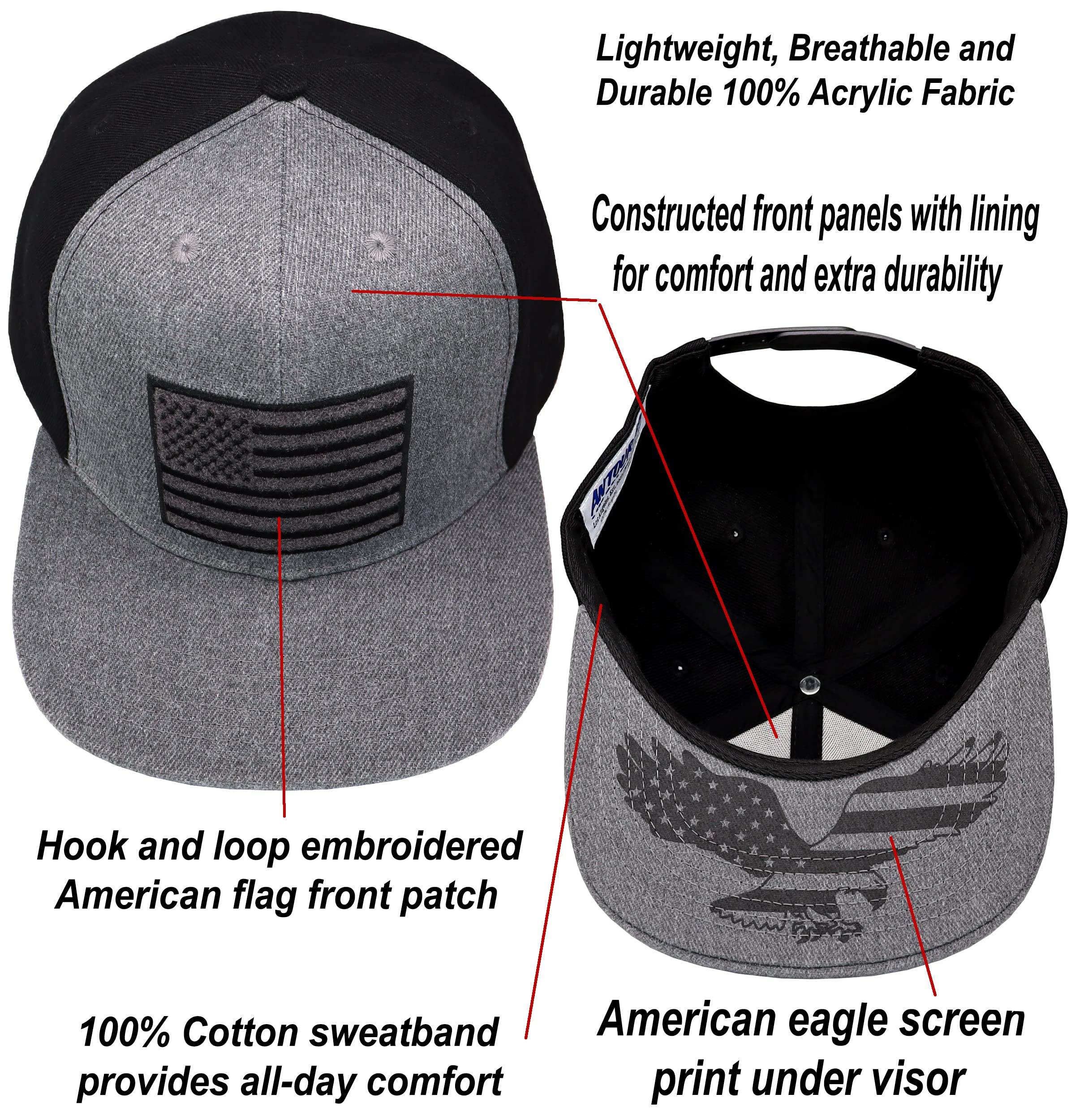 Bonus Features: Each Antourage flat visor American flag hat comes with 2 hook and loop patches (Included). One full color embroidered American flag patch and embroidered "USA" patch. You can have 3 different unique looks and change patches as you wish.