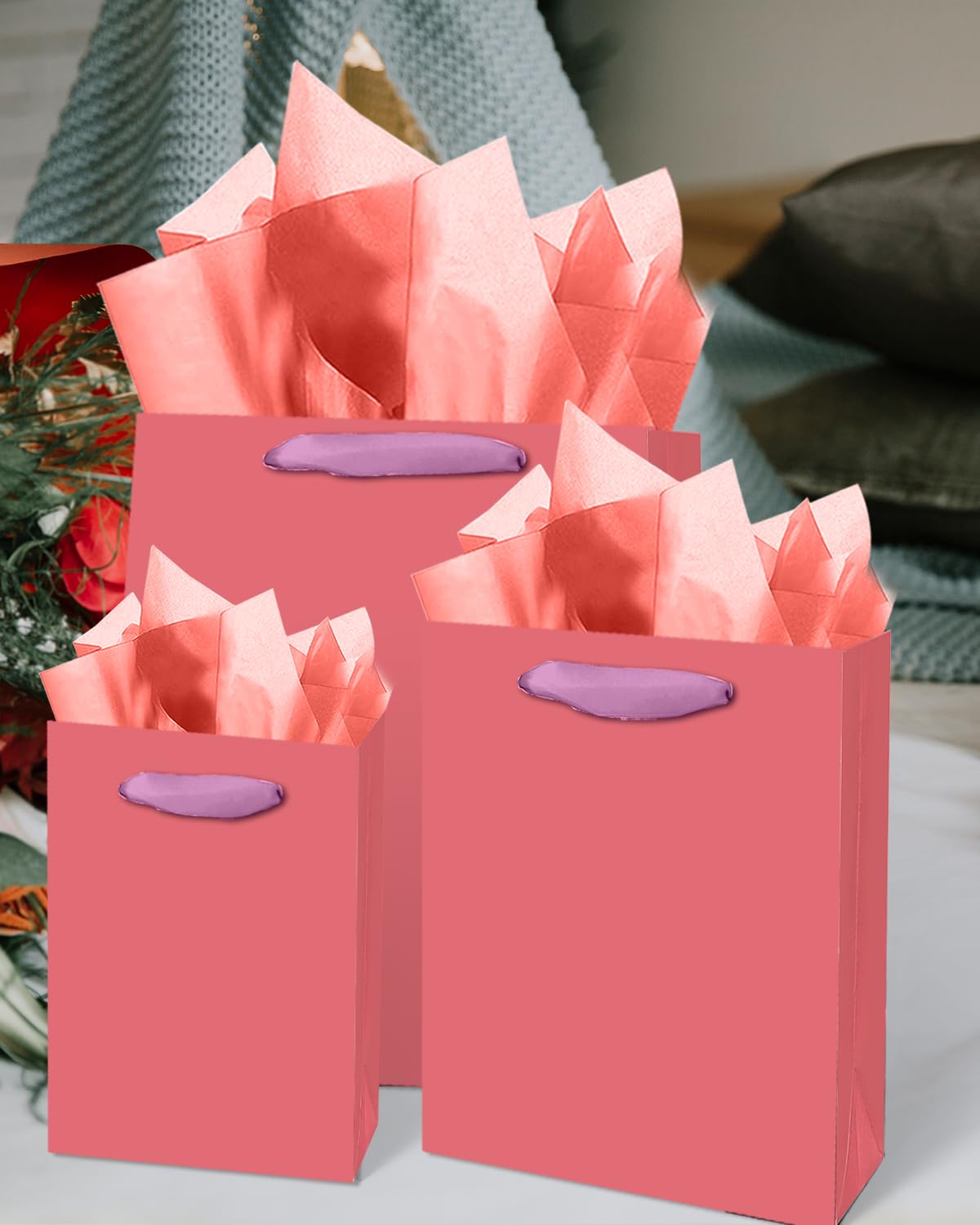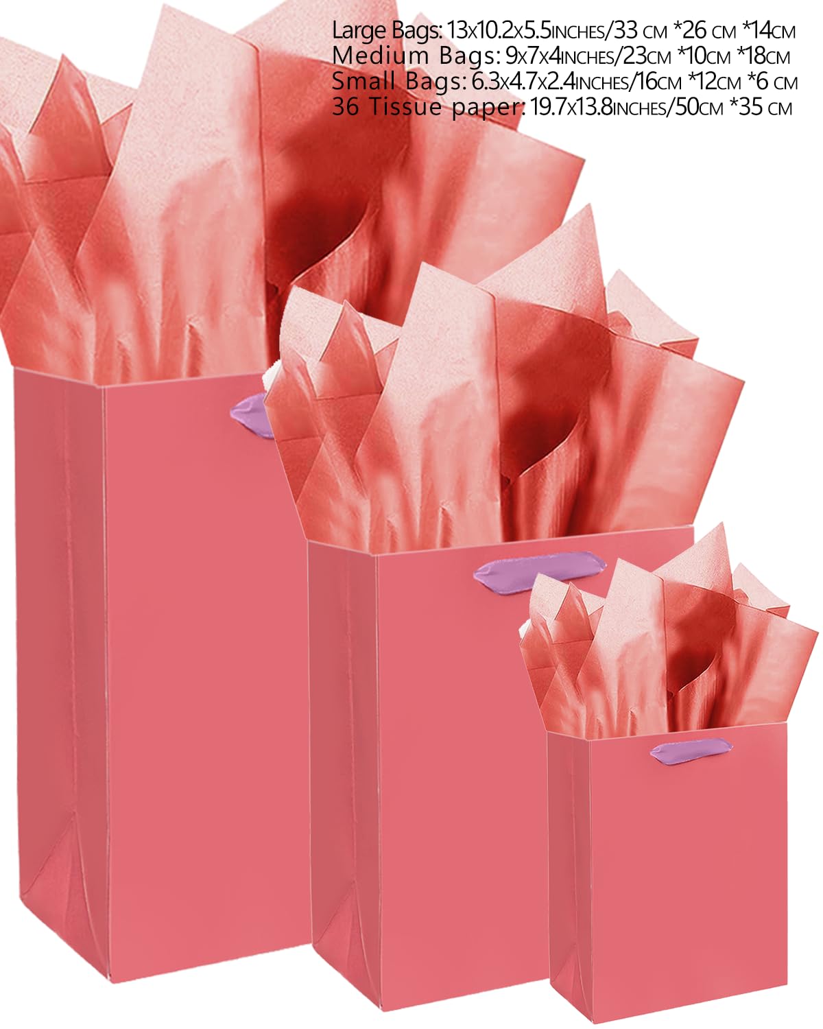 Size-Color: Salmon / (2pcs Large 5.5x10.2x13inches, 4pcs Medium 4x7x9inches, 4pcs Small 2.4x4.7x6.3inches ) / 6Pcs Tissue Paper-13.8"x19.7",16Pcs Tissue Paper-9.8"x13.8"