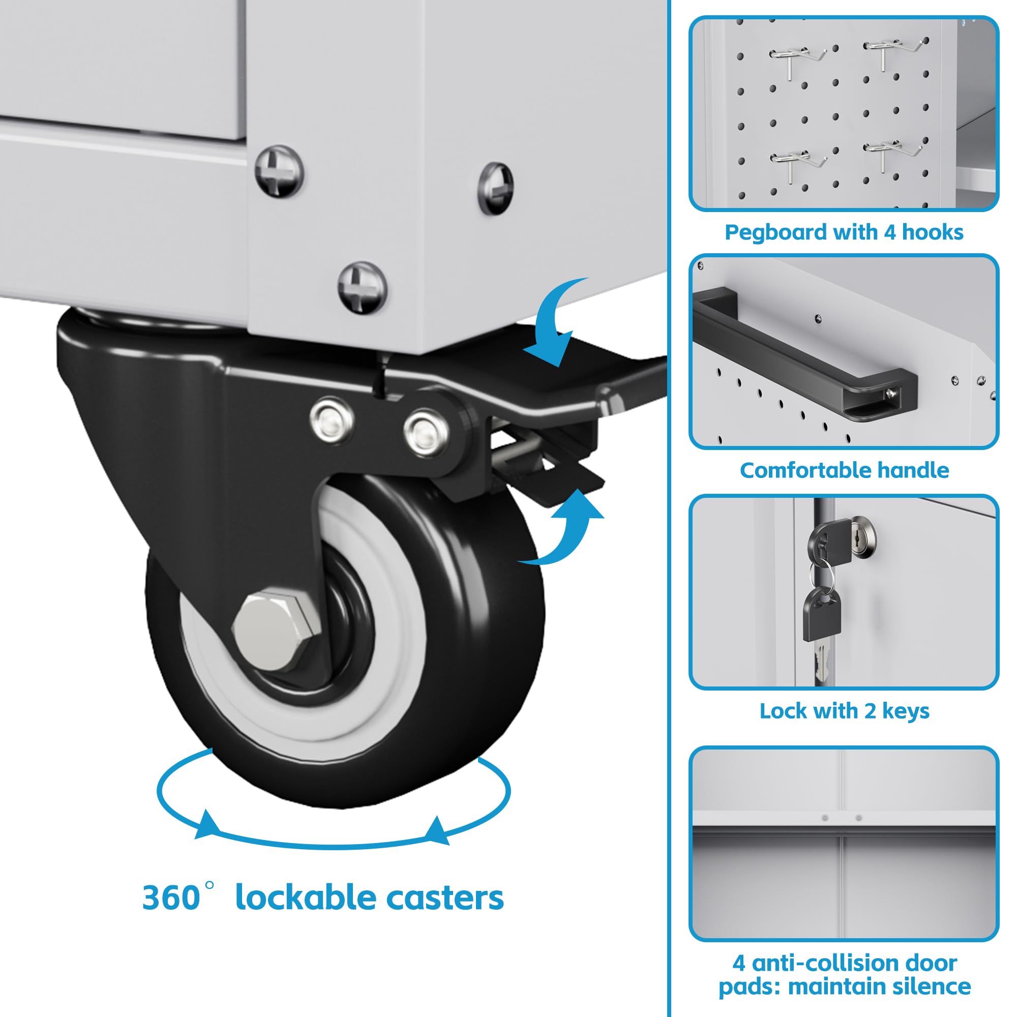 Effortless Portability with Pro-Grade Casters:Glide seamlessly across concrete, epoxy floors, or uneven surfaces thanks to 4 smooth-rolling 360° casters (2 lockable for stability). The reinforced side handle ensures ergonomic control, letting you reposition the 31.5-inch cabinet single-handedly. Ideal for reorganizing spaces or moving tools closer to your project.