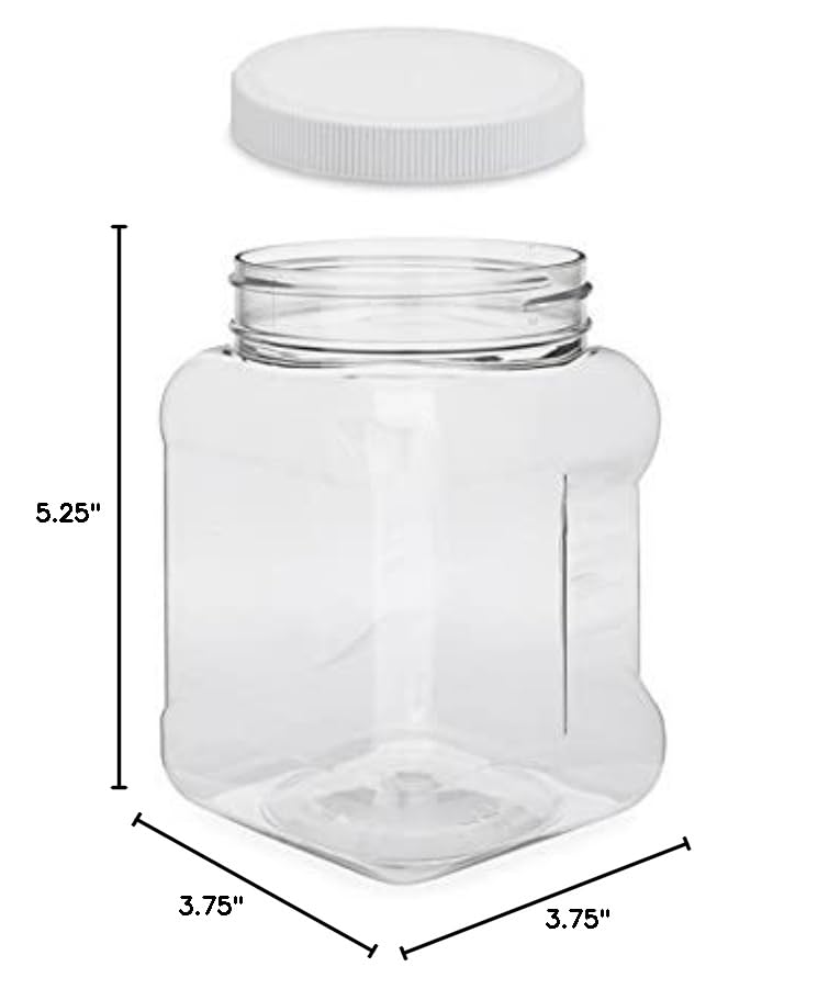 Neck size: 89-400 mm; Jar dimensions 3.75" L x 3.75" W x 5.25" H