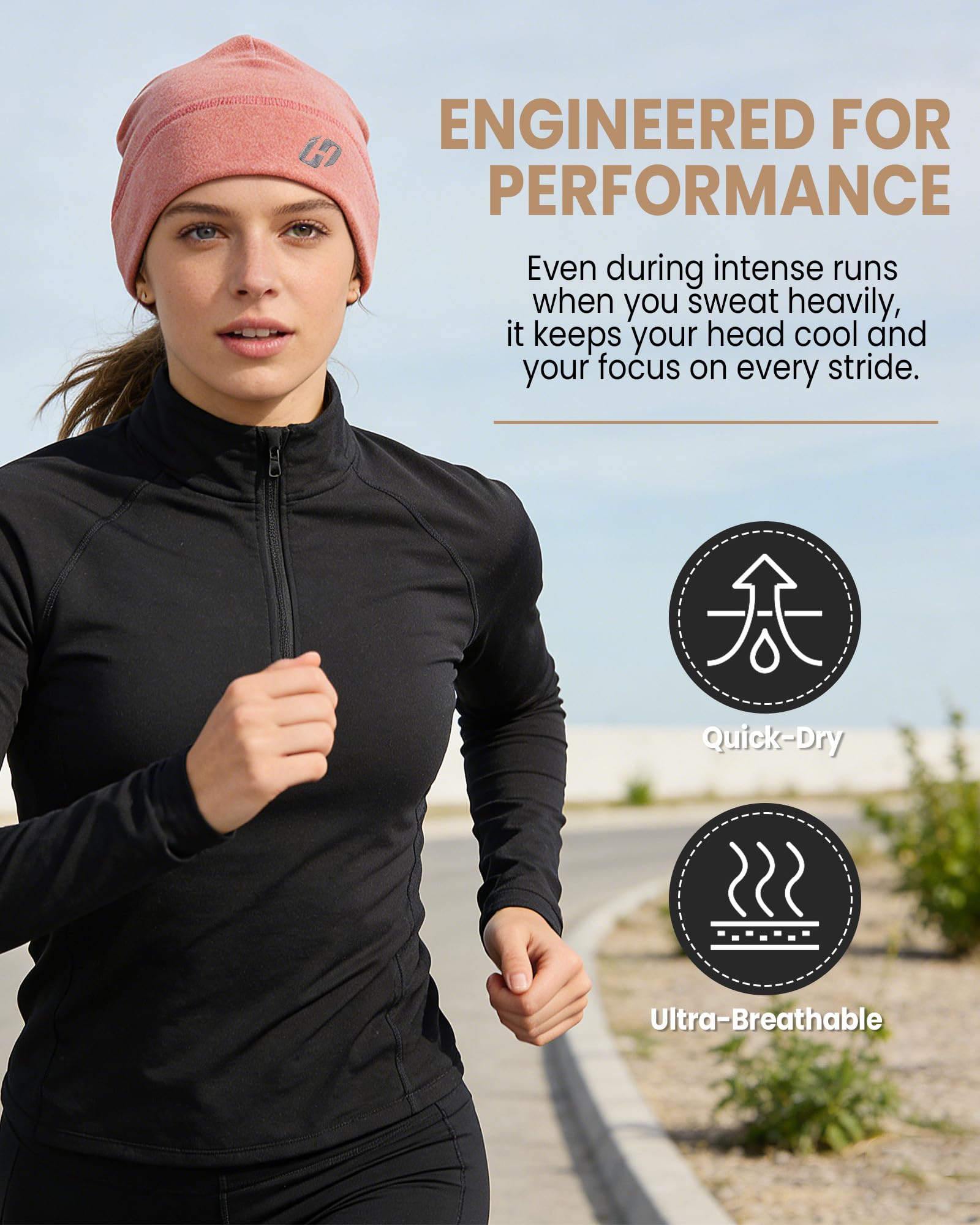 On warmer days, it breathes well. Super comfortable fleece hat that is ideal for sports activities, because the material is not very thick, light and fits well.