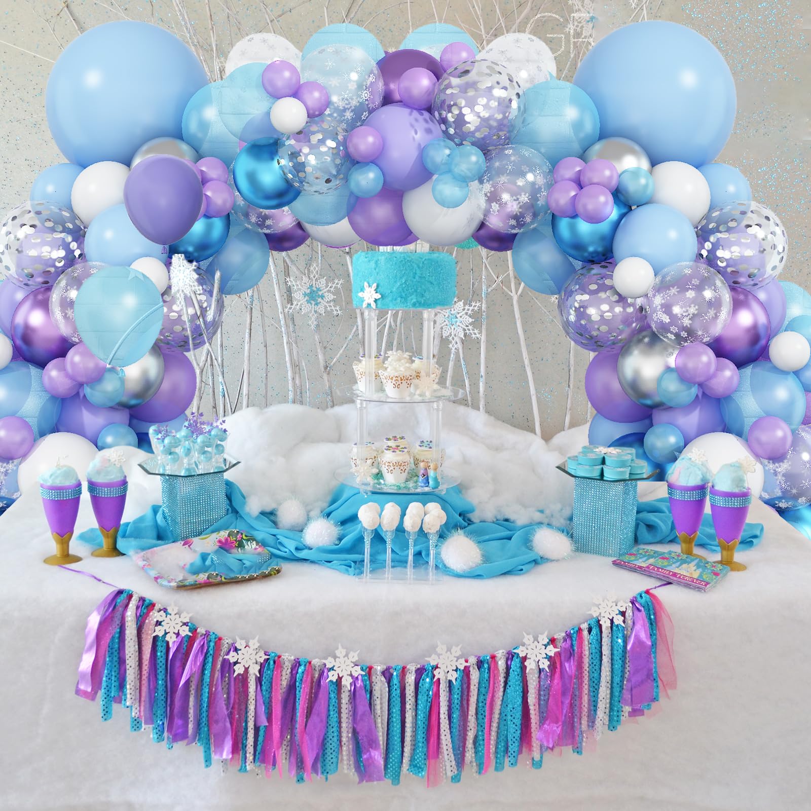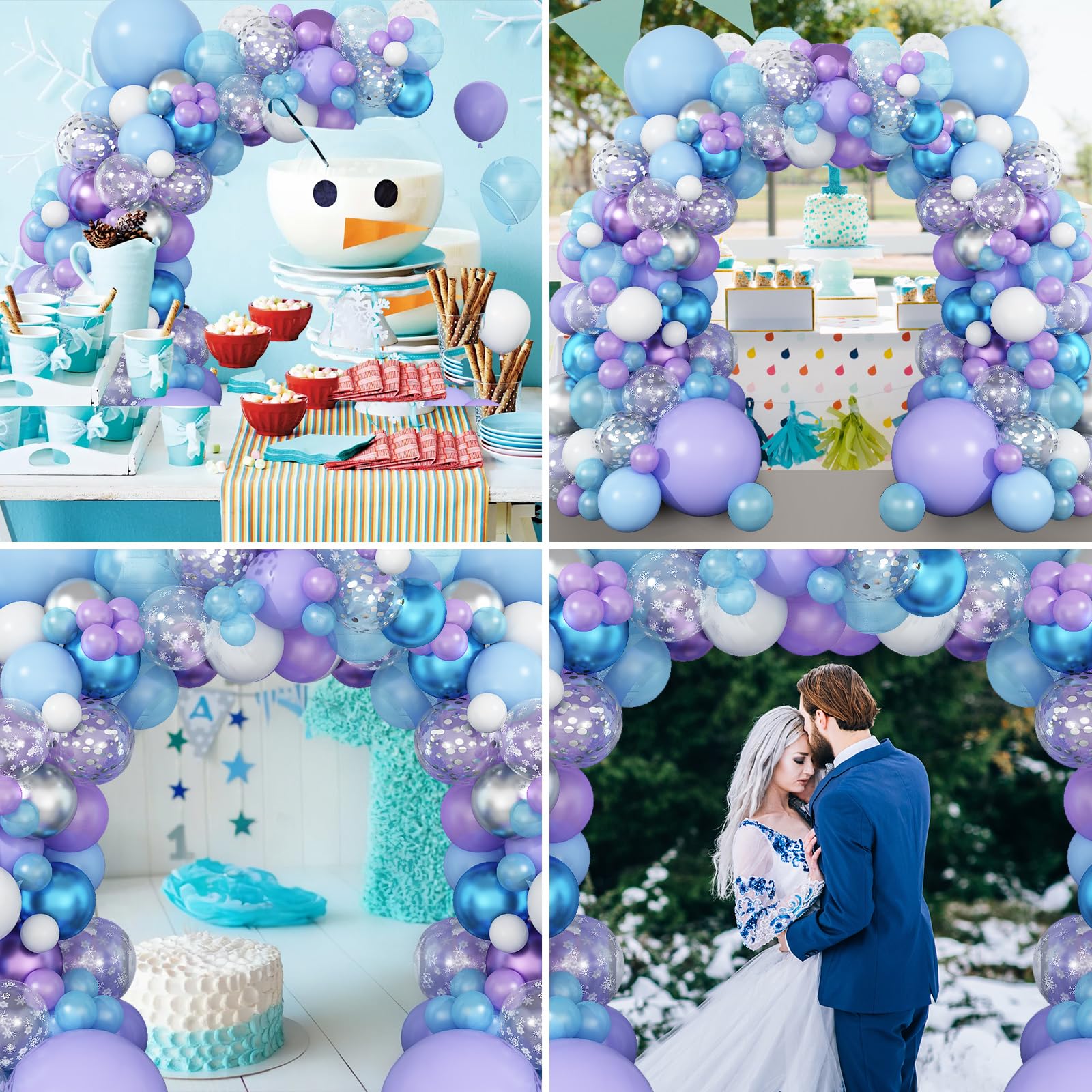 【Wide Range Of Use】This romantic blue purple balloons arch is excellent for various party decorations. Not only suitable for ice snow birthday party for girls and boys, but also suitable for weddings, baby showers, gender reveal, engagement party, winter wonderland party, New Year decoration,Christmas, Halloween, add a romantic holiday atmosphere.