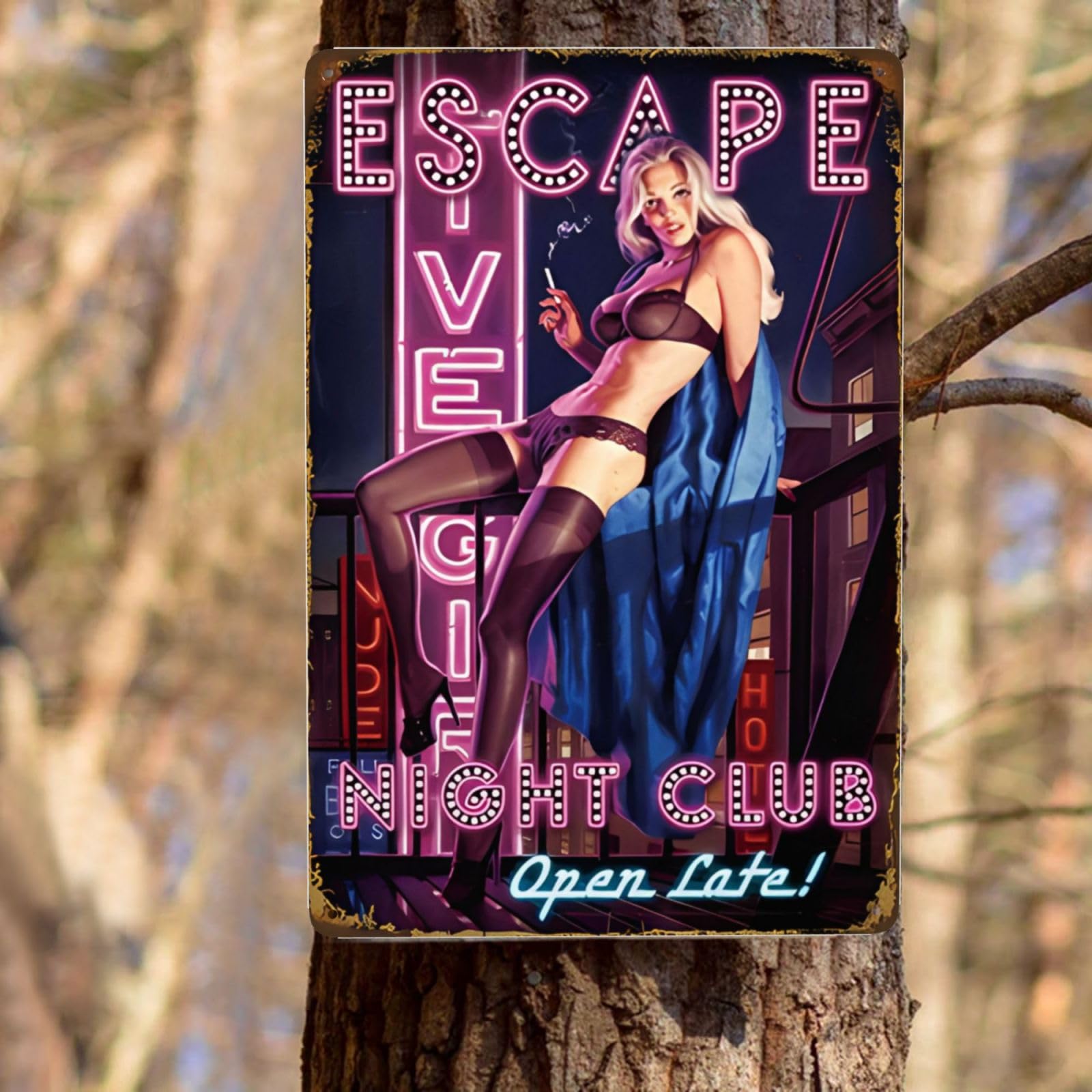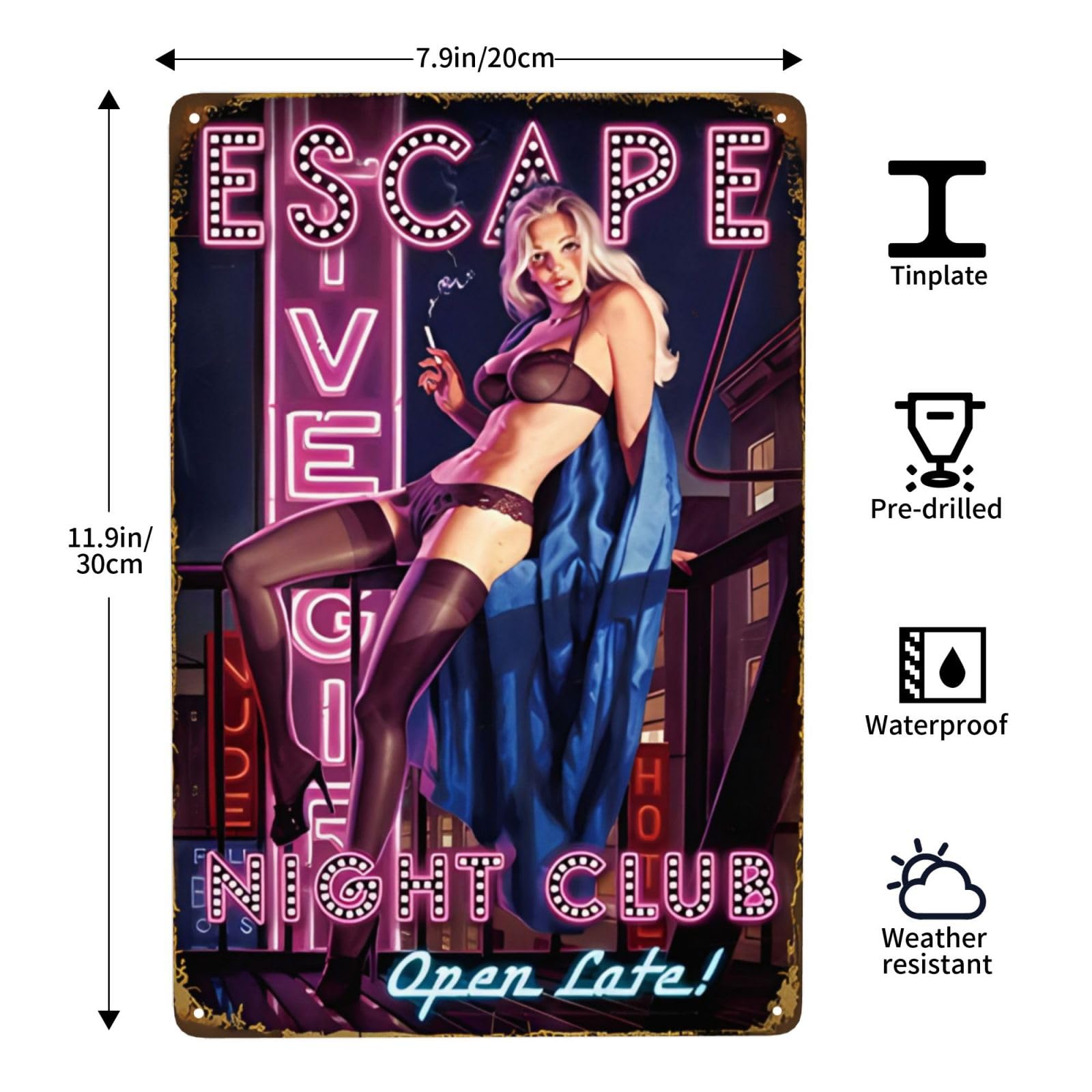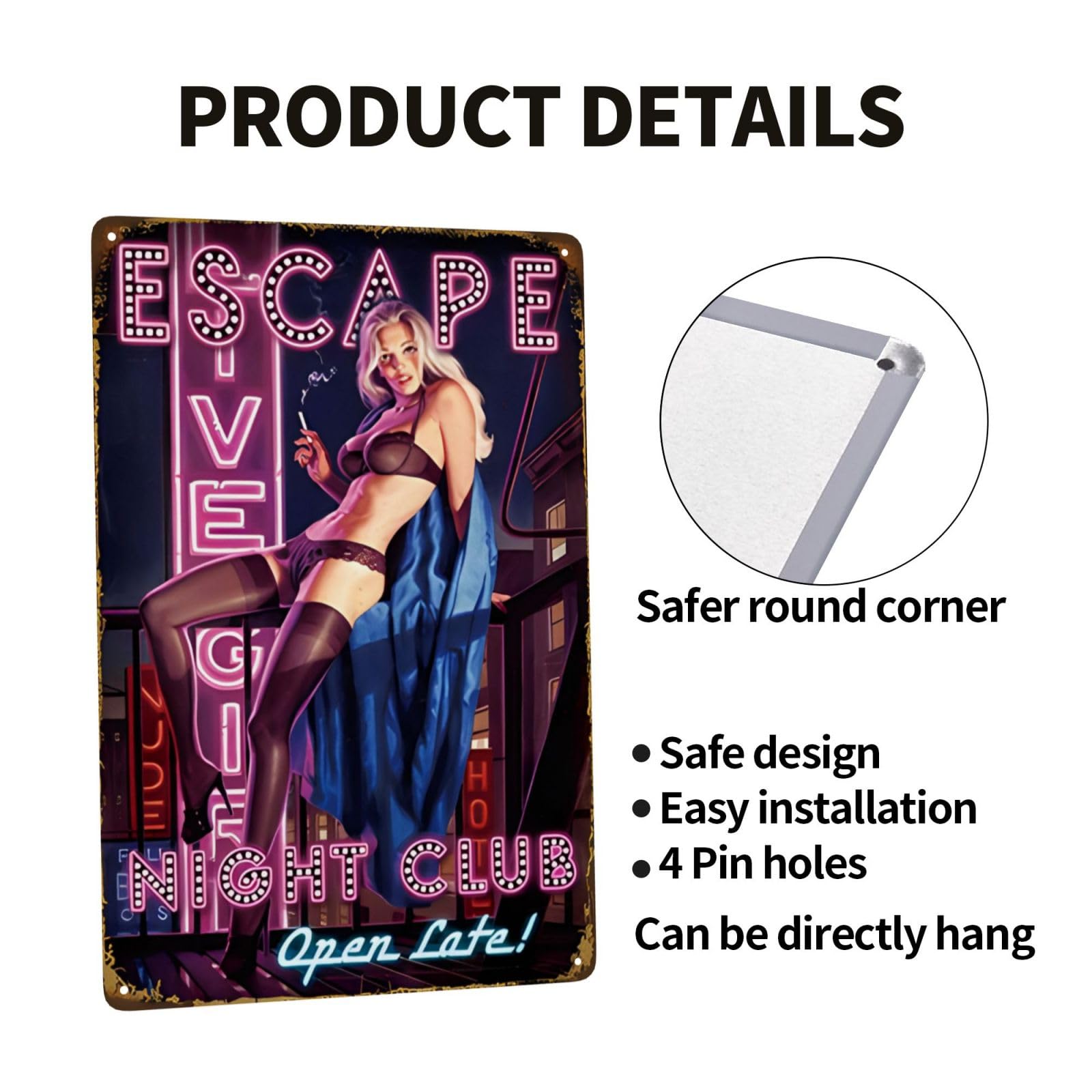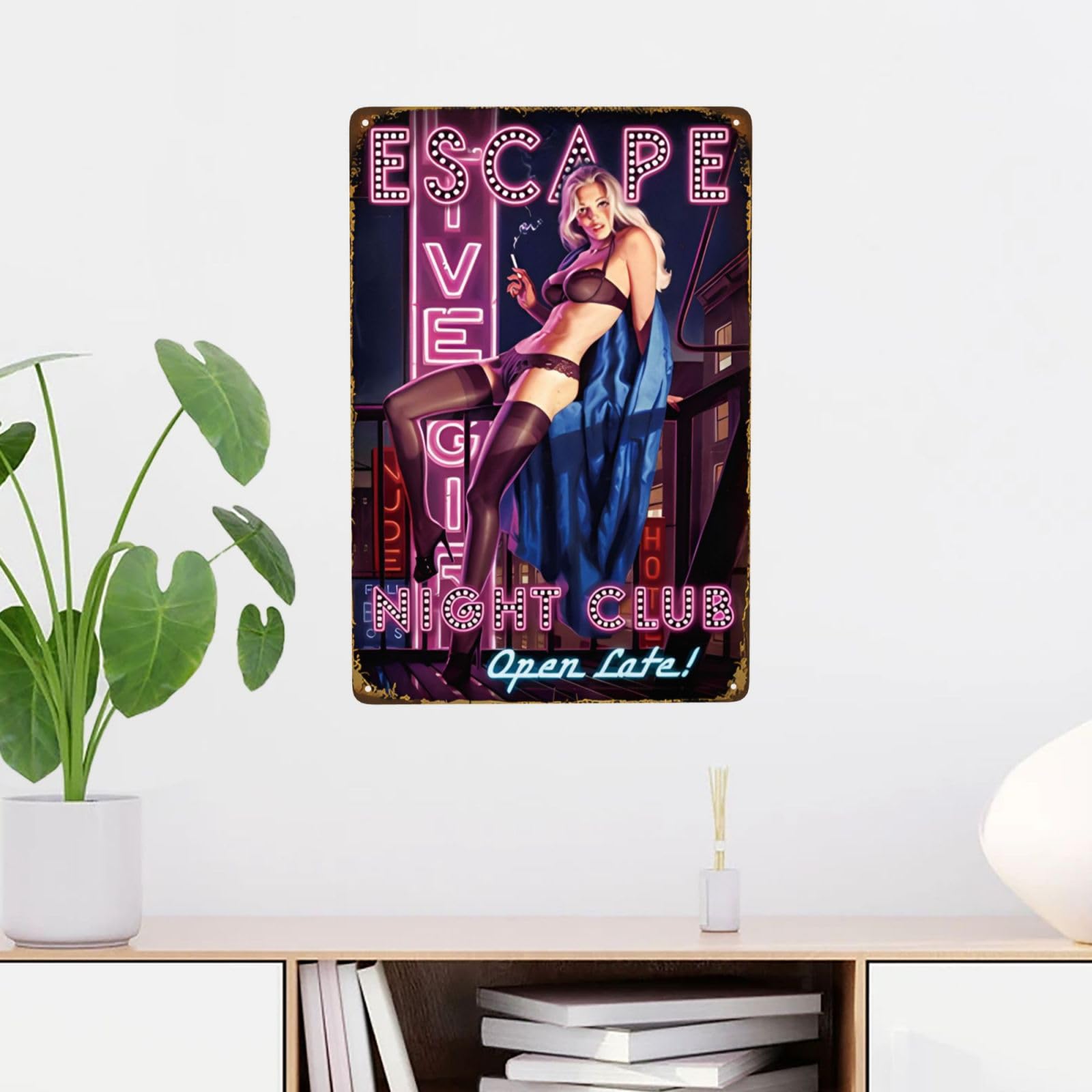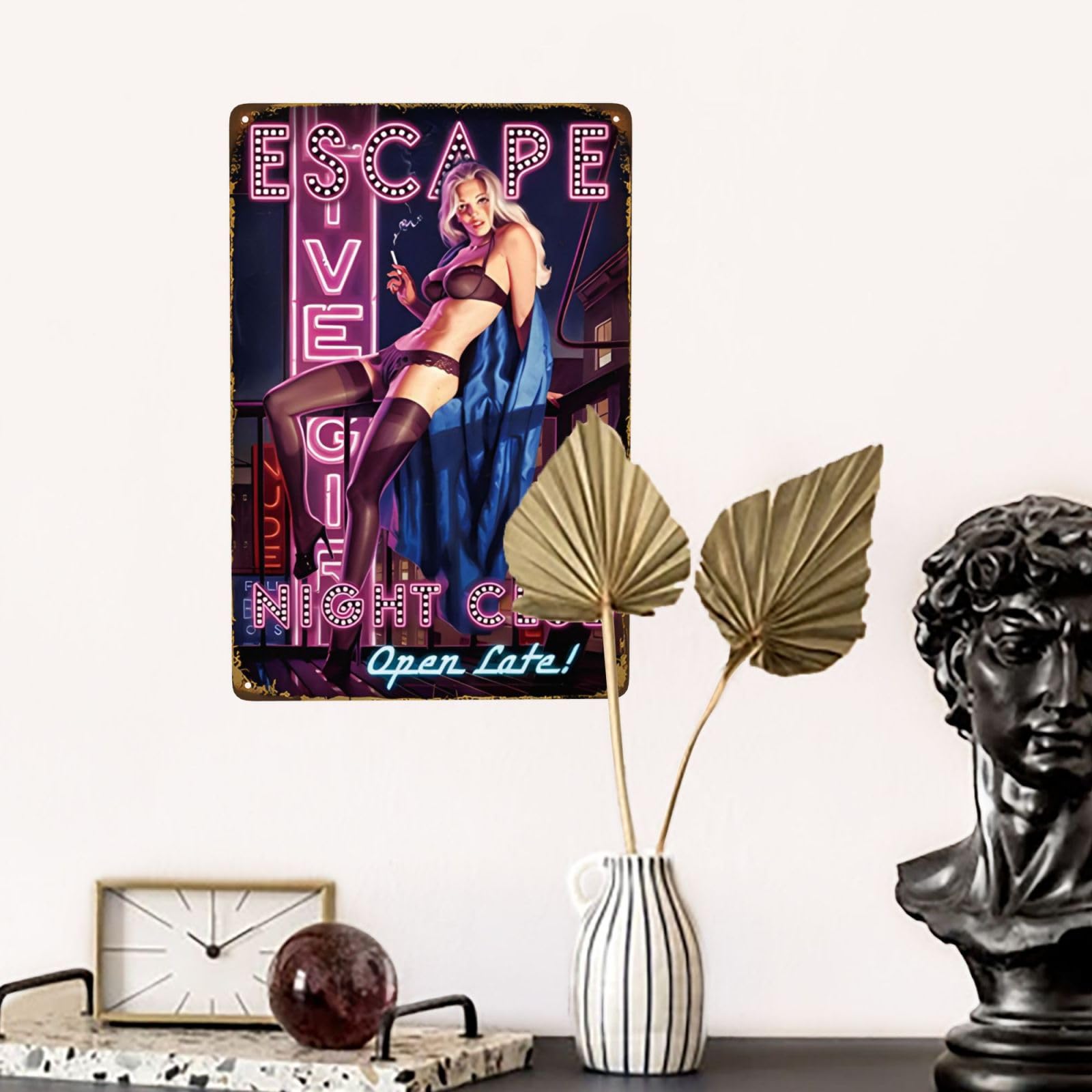 This metal sign features a sexy girl poster design, Elevate the ambiance of your man cave, bar, garage, pub, hotel, or any space with this eye-catching wall art decor