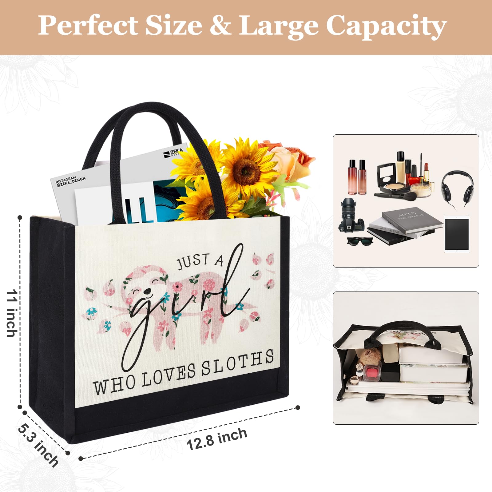 【Unique Canvas Tote Bag】Our women tote bag features a adorable sloth printing, We use advanced printing technology to ensure that the animal prints on our tote bags are vibrant, long-lasting, and fade-resistant, even after multiple washes and uses. Best sloth gift for sloth lovers, suitable as a gift for best friends, sisters, mom, daughter, niece, coworkers, schoolmate and so on.
