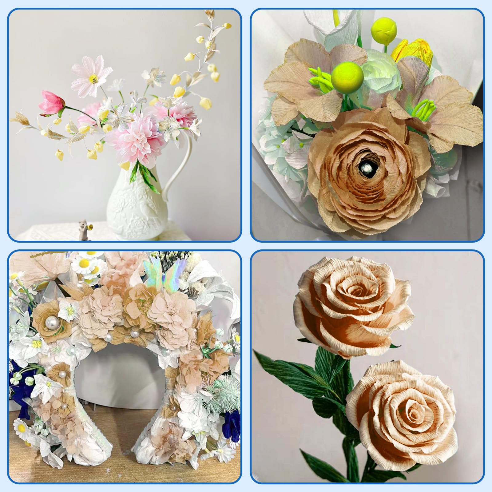 【DIY Use】 You can share the colorful crepe paper sheets with your children, friends, family, or anyone who likes handicrafts, to do craft projects with your children and friends to build a warm parent child relationship, friendship. Note: Use tape and other adhesives carefully; keep away from water to avoid fading or breaking.