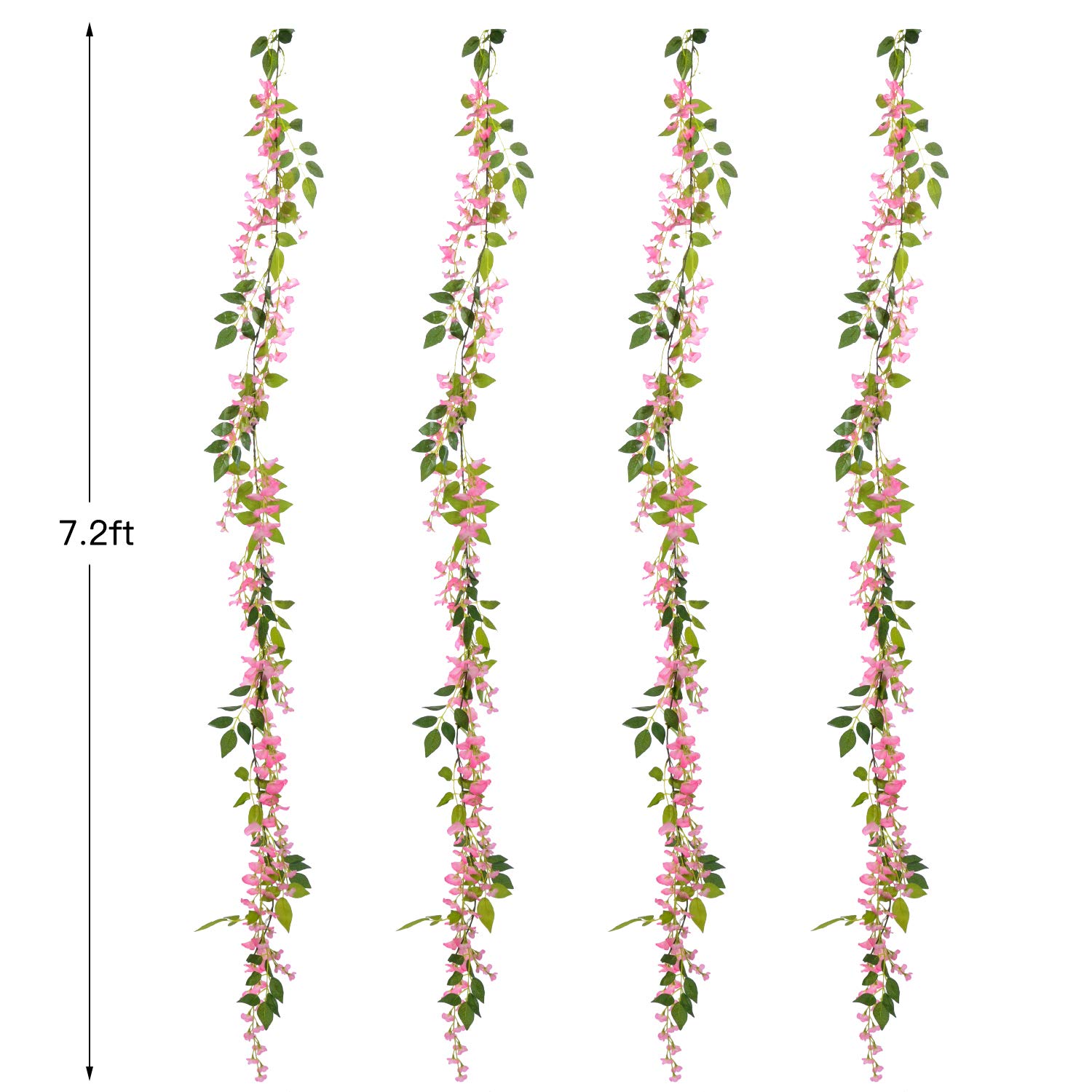 【Size】-- This pink wisteria is 7.2ft/strand in length, each strand contain 10 flower stems, and each flower stem is 15 inch in length. 1 order include 4 strands of wisteria, suitable for outdoor wedding ceremony decor, wedding hanging flowers decoration, spaces enough for decorating items you want to adorn life.