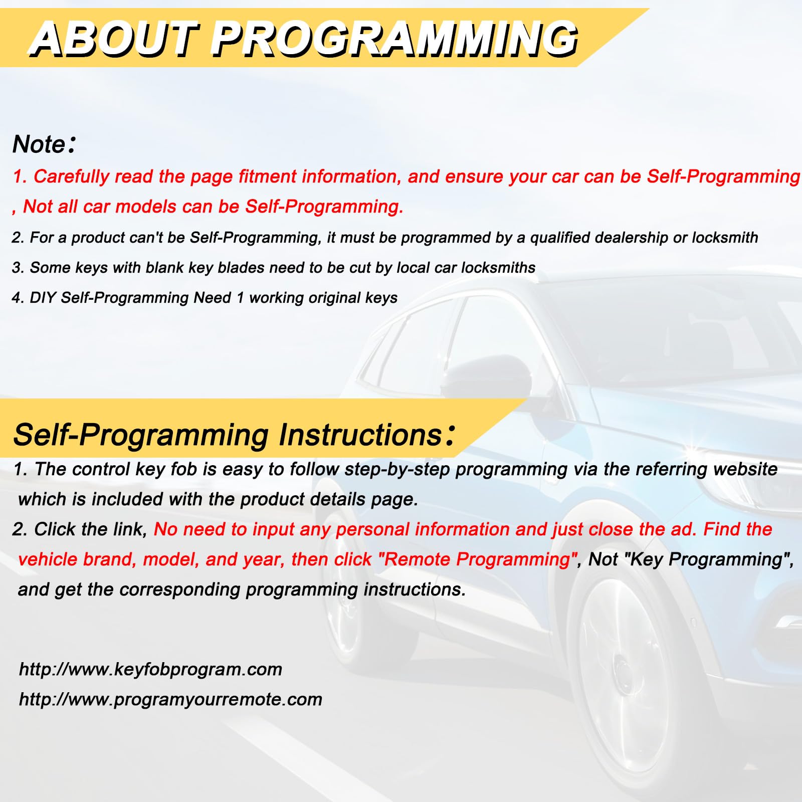 【Programming Methord】Self-Programming is Not Available, it's necessary to be cut and programmed by a qualified locksmith.