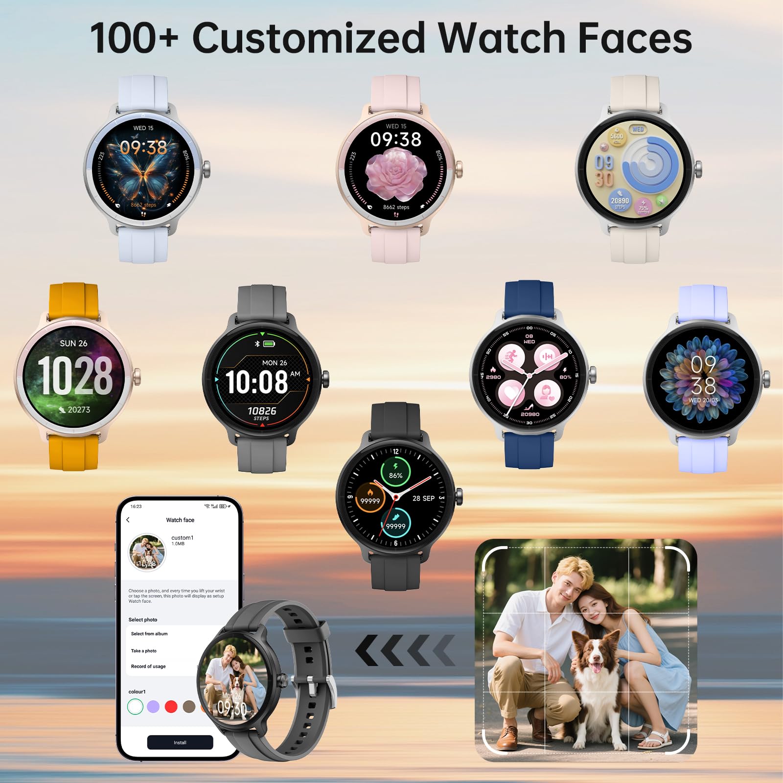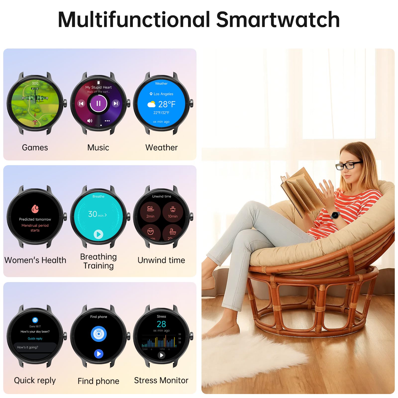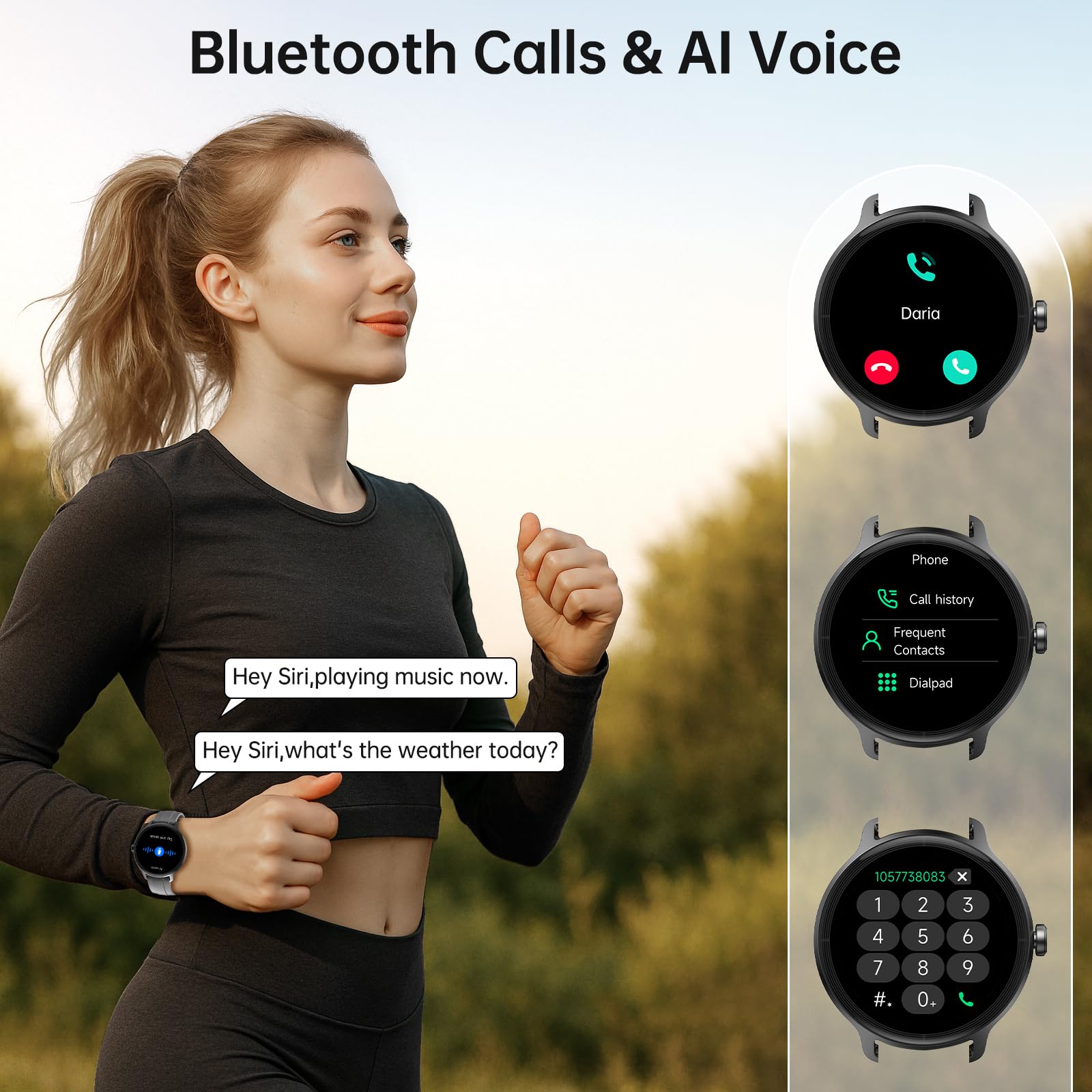 Smart Watch with Bluetooth Call & AI Voice Assistant: Experience seamless connectivity with this smart watches for men women. The 1.27" HD circular display enables direct Bluetooth 5.3 calls: answer/make calls, store 20 frequent contacts, review call history. Activate built-in AI voice ("Hey Siri"/"Hey Google") to make calls, control music playback, or check real-time weather hands-free. Elevate efficiency during workouts/commutes with instant voice commands.