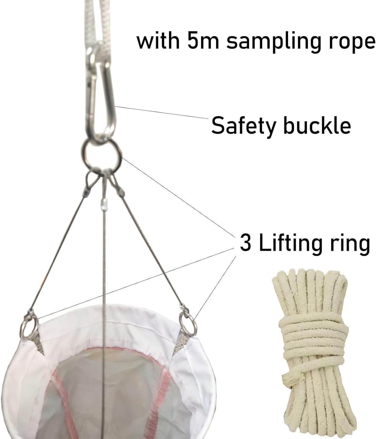 What You Will Get: 1 x Plankton collection net, 1 x Contains 5 m sampling rope, 3 x Lifting ring, 1 x Safety buckle