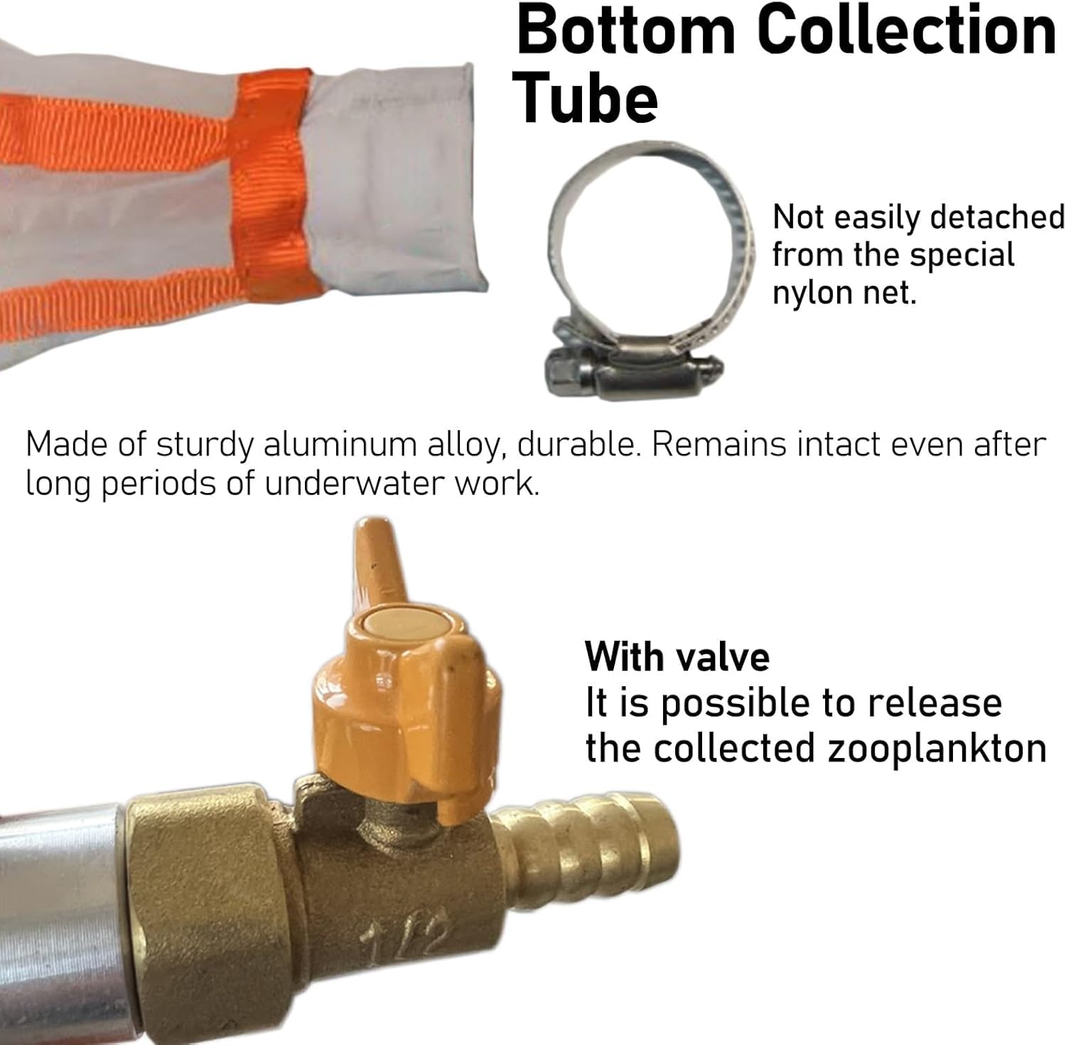 Experimental Grade Nylon: Our plankton nets are made of experimental grade nylon, can tolerate acid and alkali, repeated cleaning is not easy to wear. The bottom collection tube uses Sturdy Aluminum Material, with high strength and remains intact even after long periods of underwater work