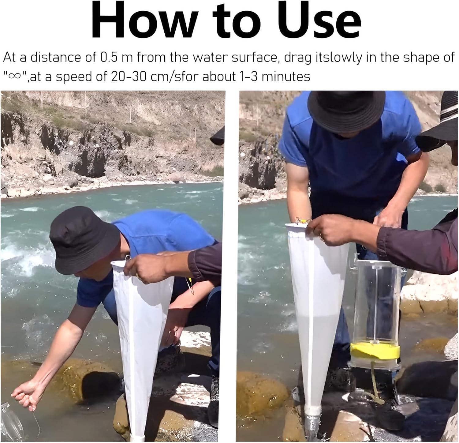 Usage: In the water depth from the surface to 0.5m, do the "∞" shape reciprocating slow drag at a speed of 20-30 cm/s for about 1-3 minutes, after sampling, clean and dry the plankton net and store it in a cool and dry place for later use
