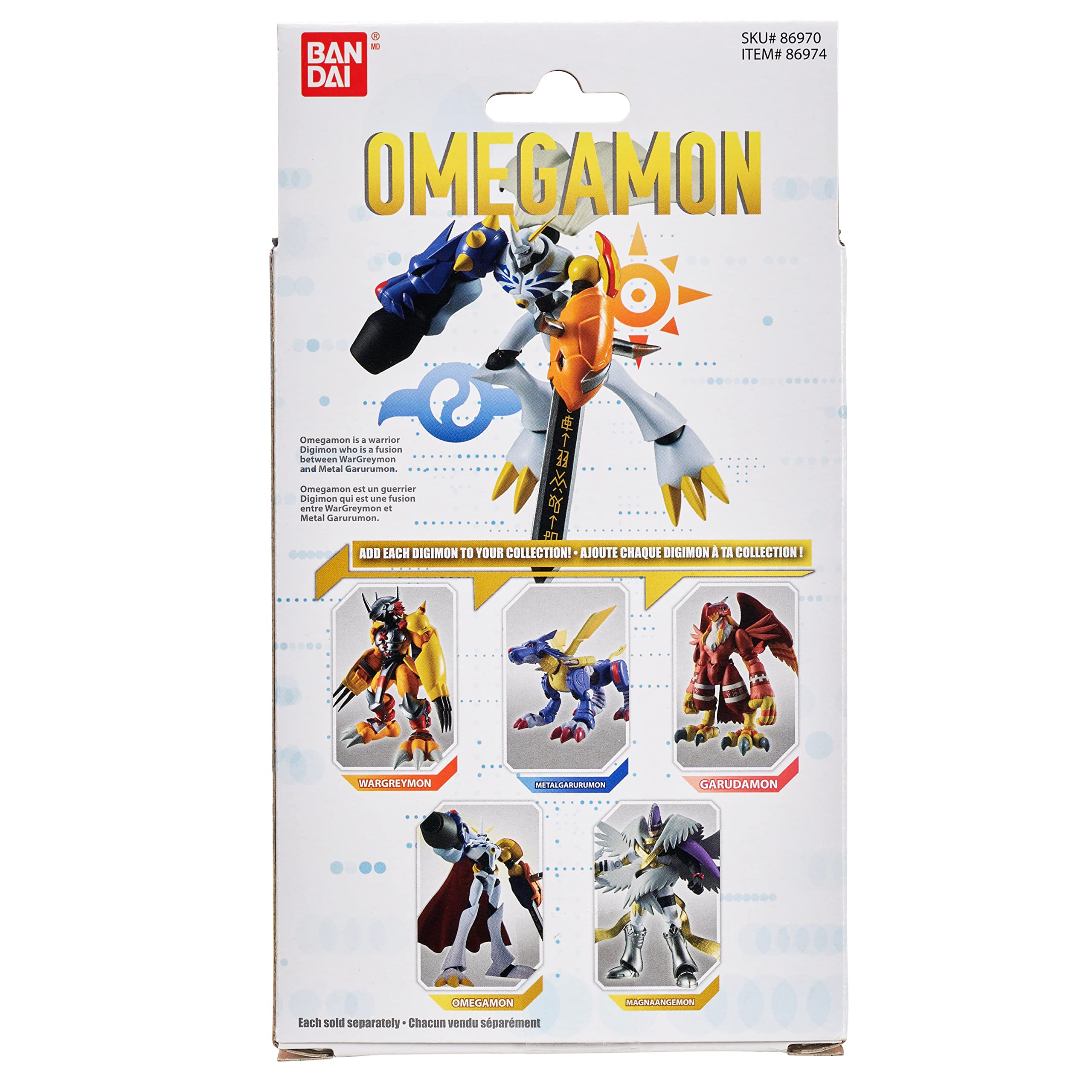 From the popular anime series Digimon Adventure, your favorite Digimon characters are now available as poseable figures in the Bandai SHODO series. Omegamon was born from the fusion of WarGreymon and Metal Garurumon. It comes equipped with a sword and shield on its War Greymon shaped left arm, a canon on its Metal Garurumon shaped right arm and cape.