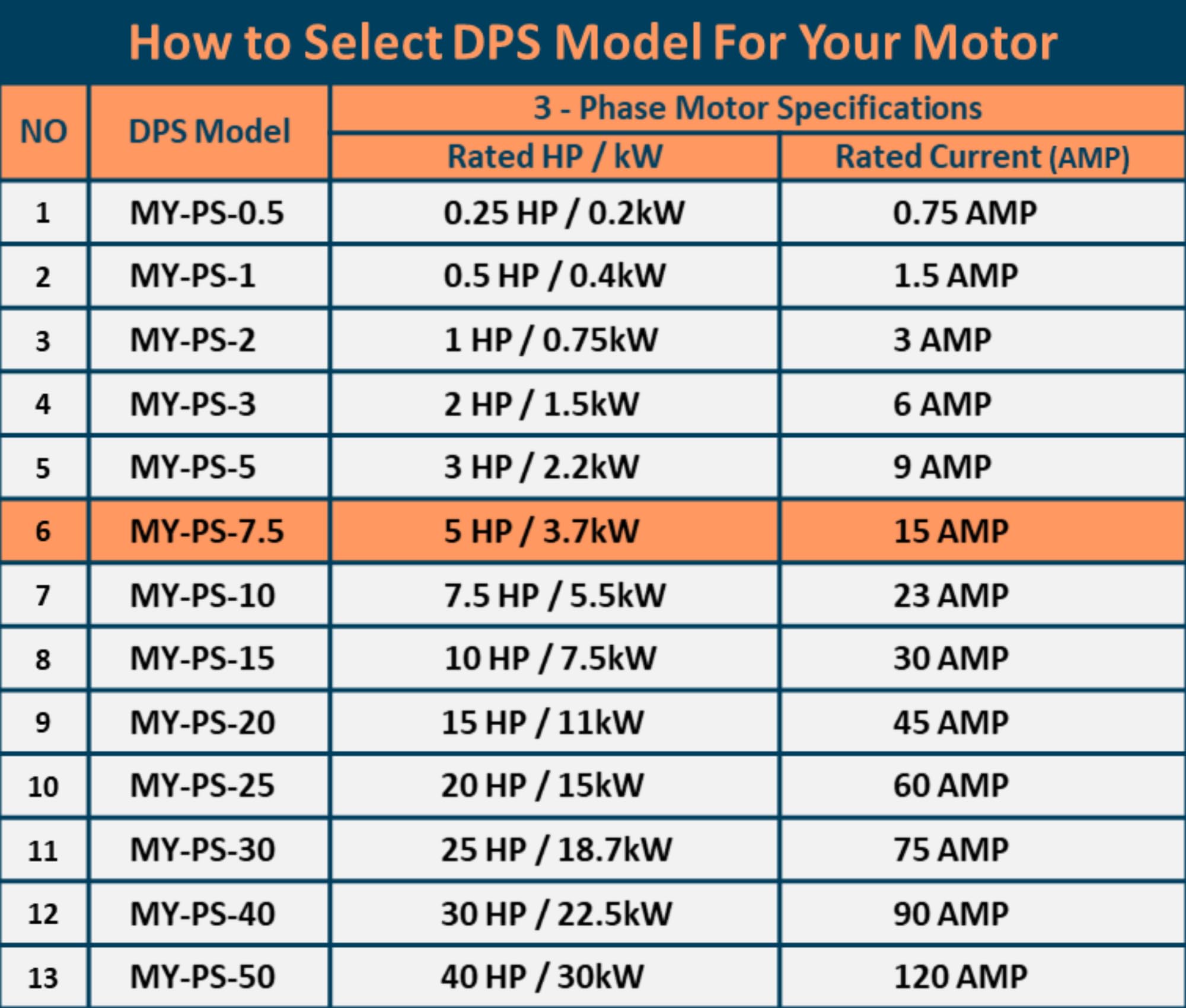 7.5HP, 23A (Use for 5HP, 15A Motor)