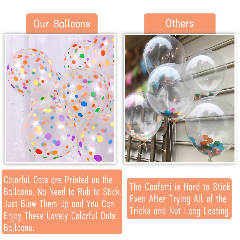 VIBRANT DESIGN: These lovely colorful polka dot balloons have richer colors and more dots. And compared with confetti balloons, this rainbow polka dots Balloon doesn't need to rub to stick. Just blown them up and you can enjoy these cute multicolor dots balloons