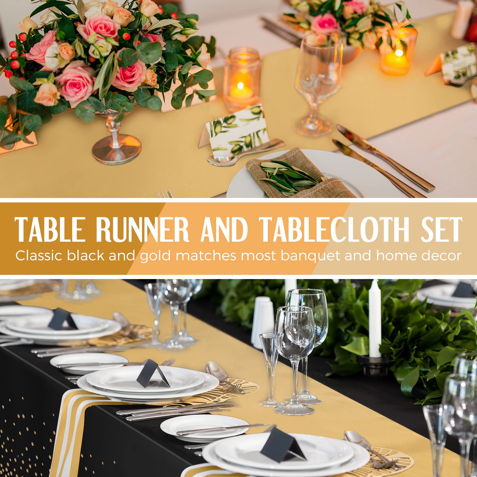 Quality Tablecloth Set: the disposable waterproof table covers are made of PEVA plastic, waterproof and oil proof, soft and exquisite, the table runners are made of satin polyester material, can be ironed, polished edges and comfortable touch, leaving a pleasant user experience