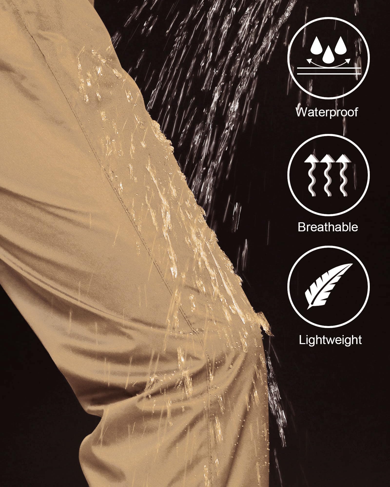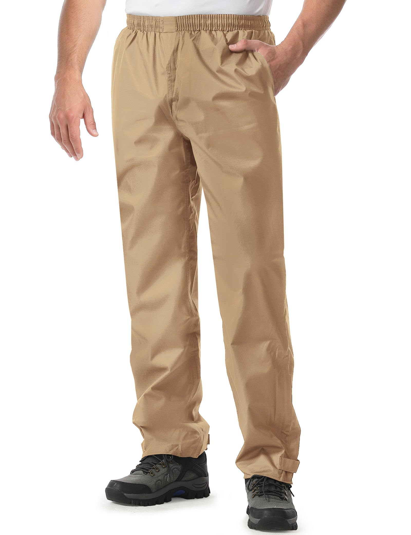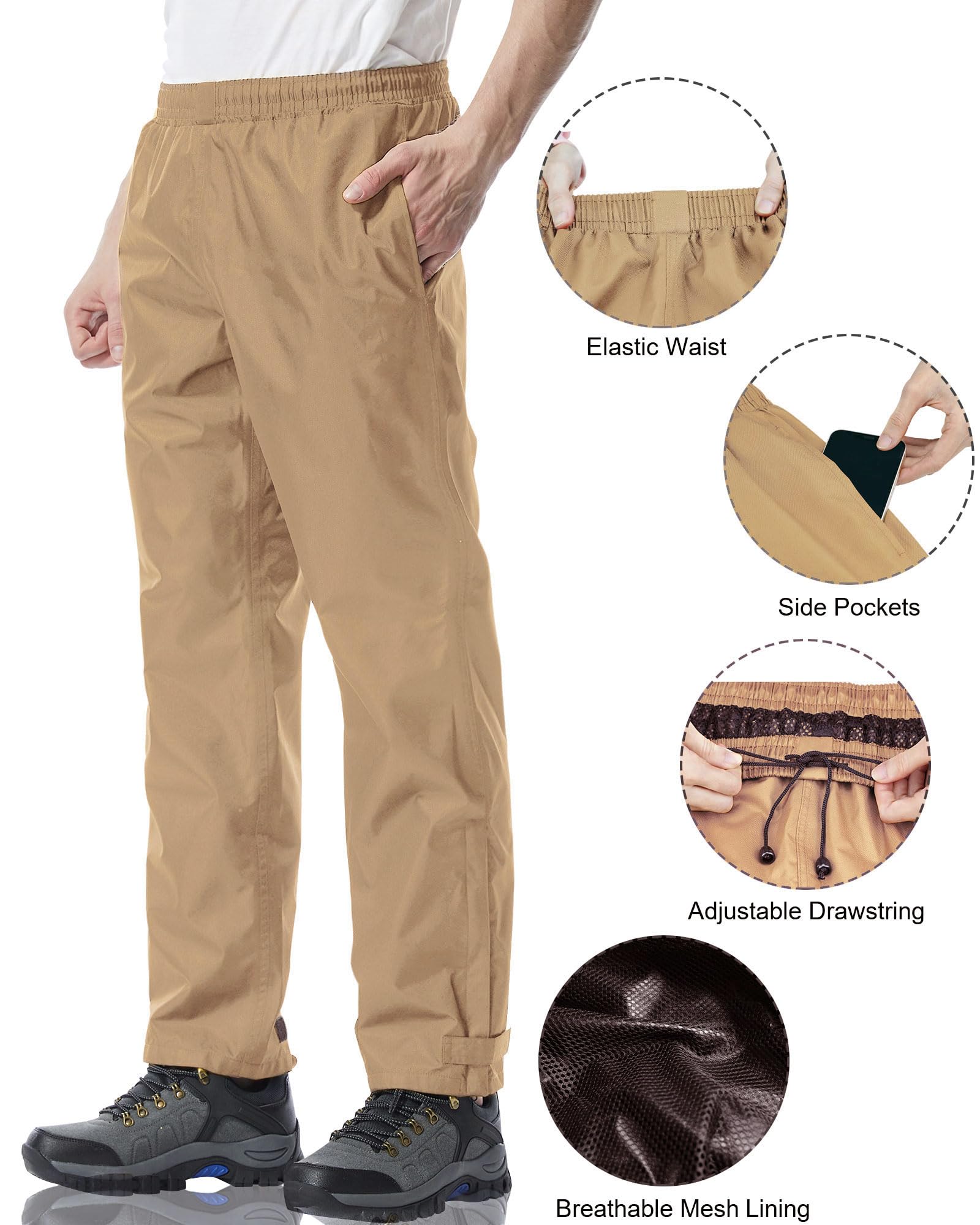 Waterproof Fabric: 100% Waterproof and windproof, keeps you dry in the rain. Waterproof rating: 5000mm. iCreek men's rain pants are made of premium nano polyester waterproof fabric, it is waterproof, soft, comfortable, etc
