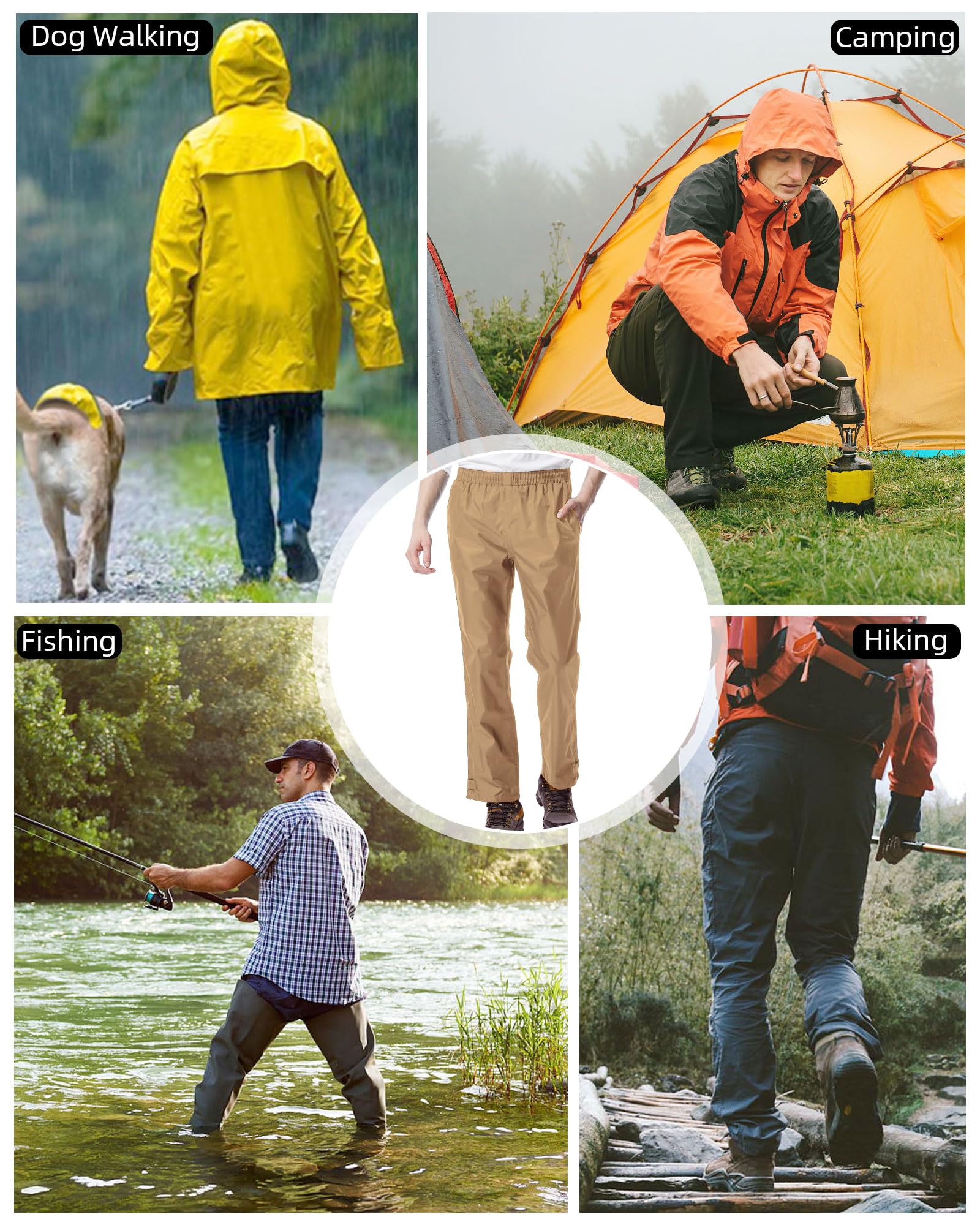 Occasions: iCreek lightweight rain pants are great for hiking, mountaineering, biking, golf, camping, fishing, boating, walking, horse riding, hunting, jogging, boating, dog walking, work, other outdoor rain activities and daily wear