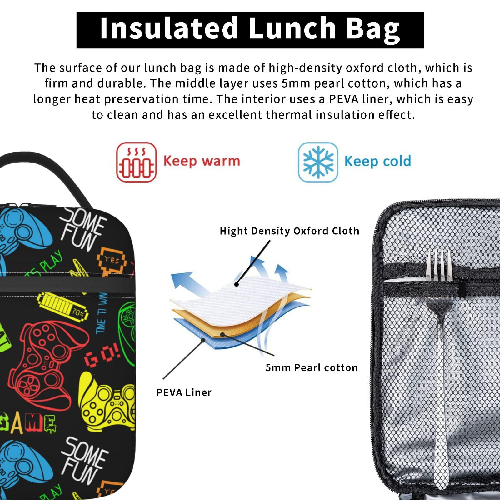 Material:The Reusable Lunch Bag Is Made Of The Highly Durableoxford Fabric (100% Polyester),Food Safe Peva Lining And Sturdy Zippers.Oxford Canvas Fabric Waterproof, Premium Aluminum Soft Leakproof Liner. Easy To Clean.