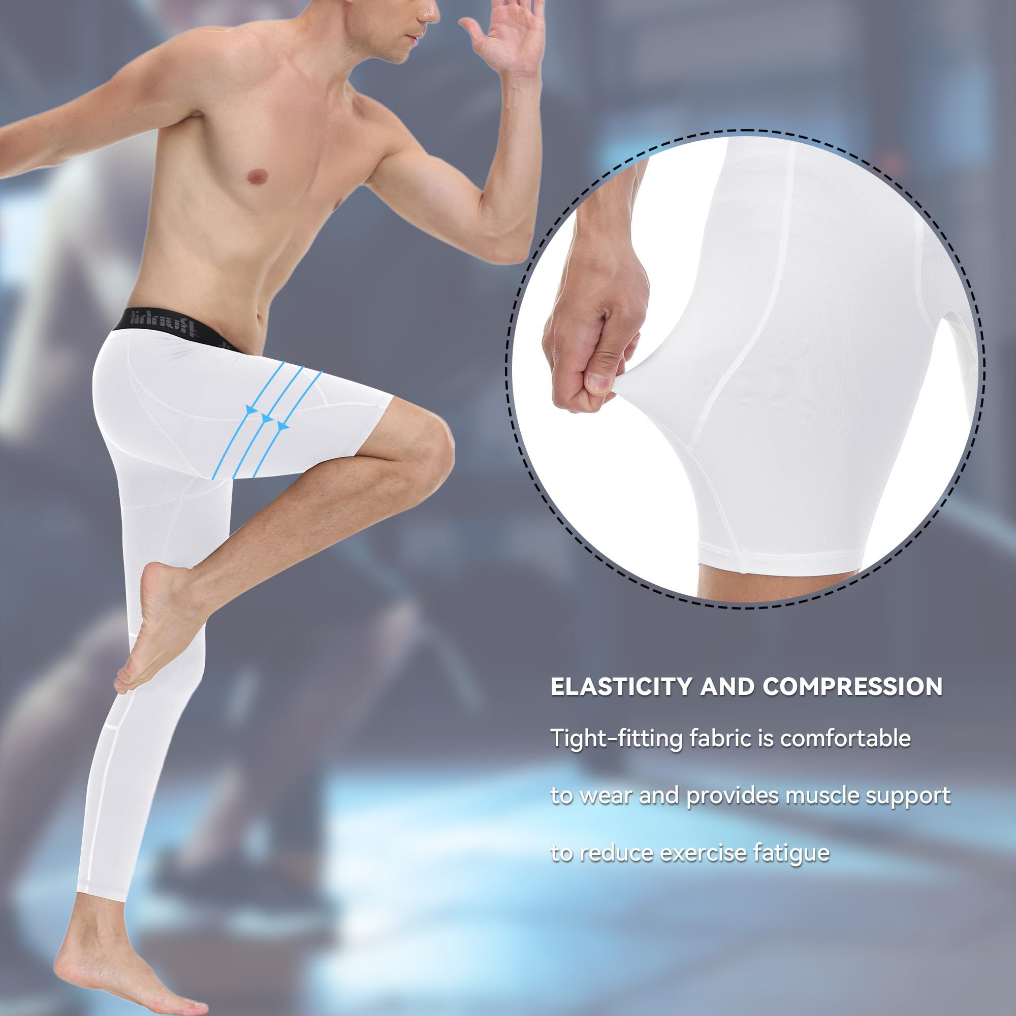 One-Leg Design: The compression pants men have unique asymmetrical one-leg design combines fashion and functionality, bringing a unique trendy style to the wearer, suitable for sports and leisure occasions