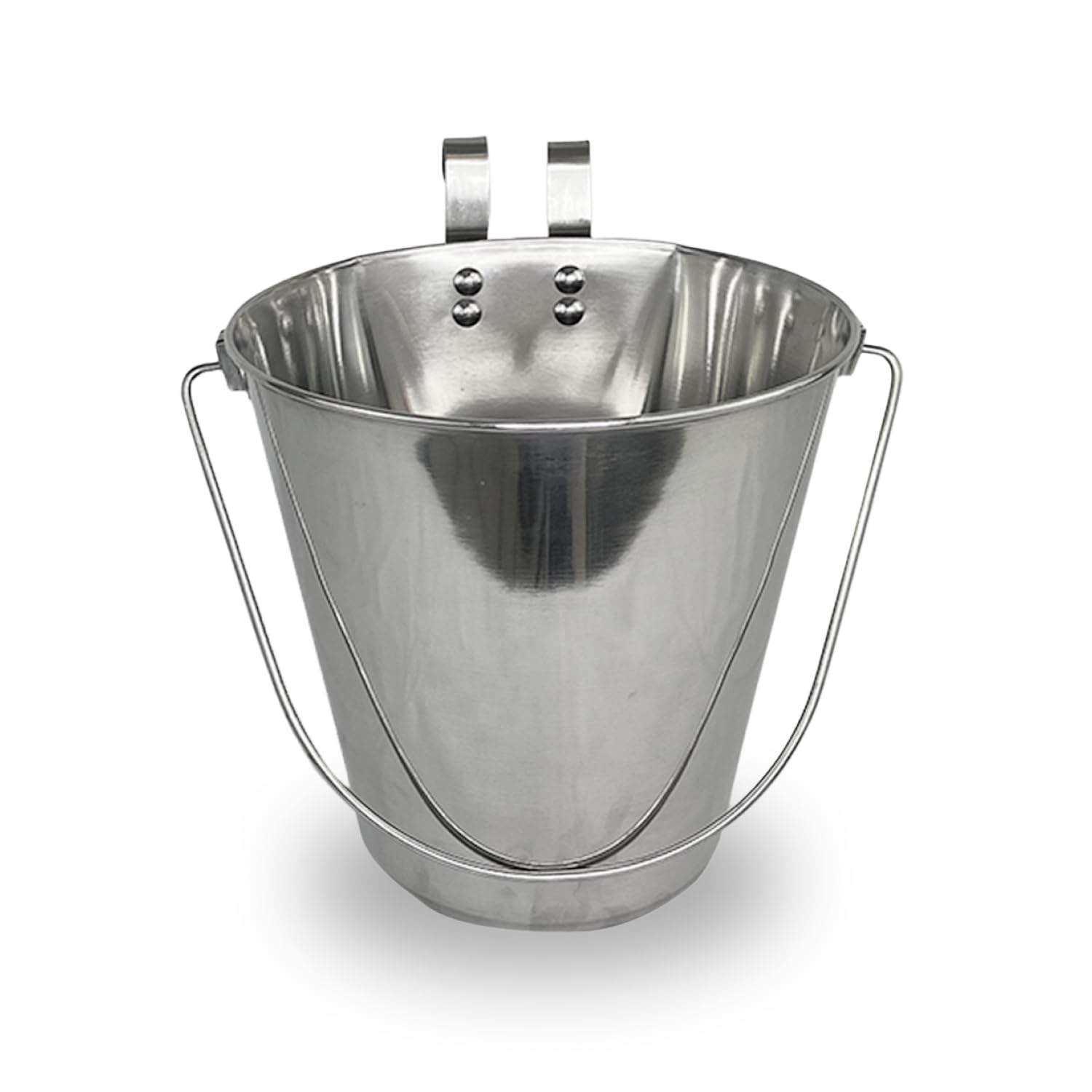 9 Quart Stainless Steel Bucket with Dual Hook | Perfectly Fits on Kennels, Cages and Critter Crates | Heavy Duty Bucket for Pets Cleaning & Food Prep - Flat Sided Pail