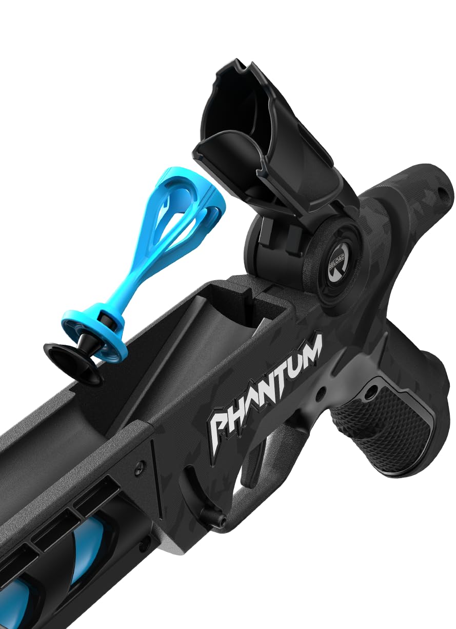 BARNETT PHANTUM SERIES SUCTION DART CROSSBOW: This suction dart crossbow features a 3 + 1 shot capacity and is pump action loading. The set comes with 6 Suction Cup Safety Darts and a free practice target so you can work on your aim