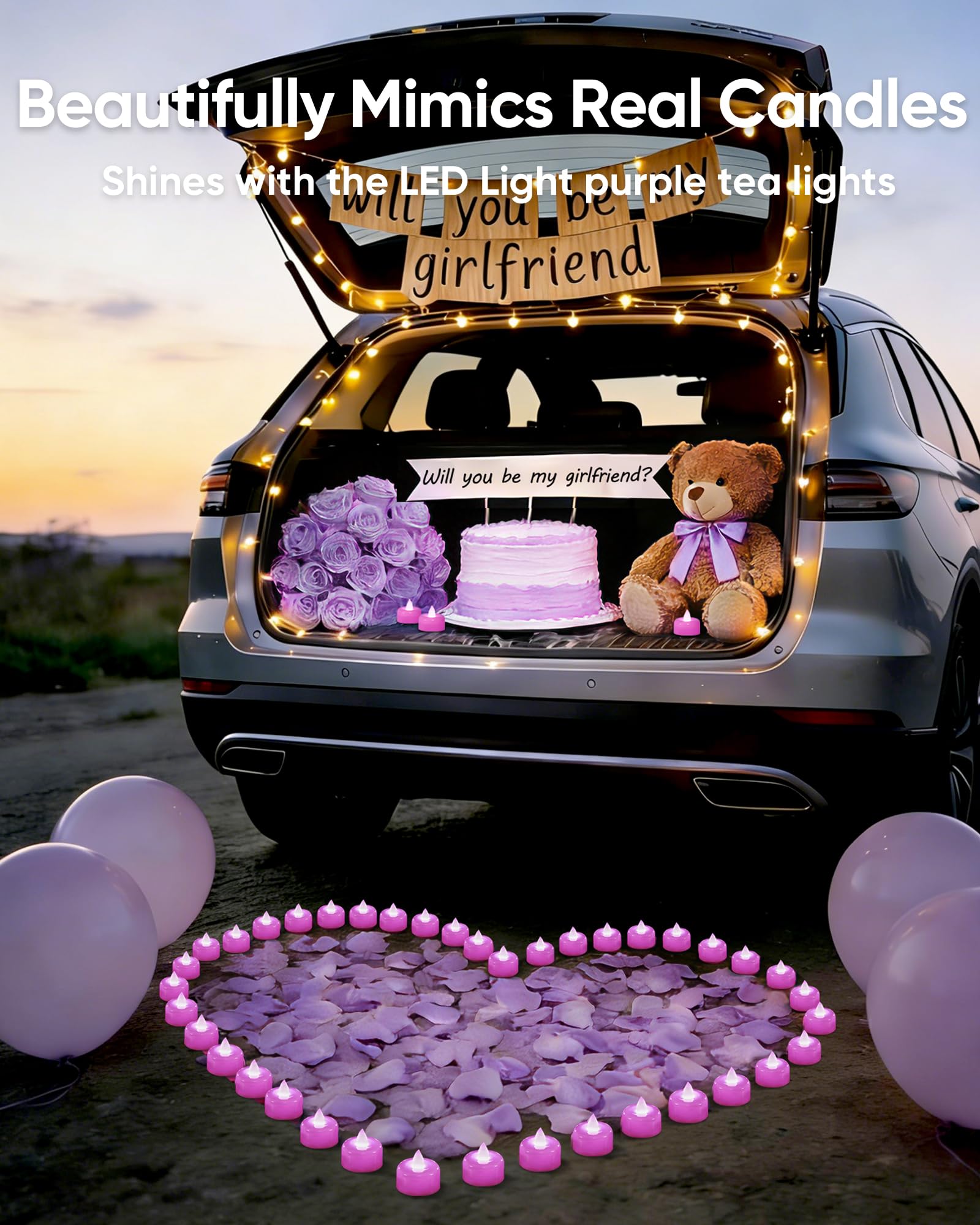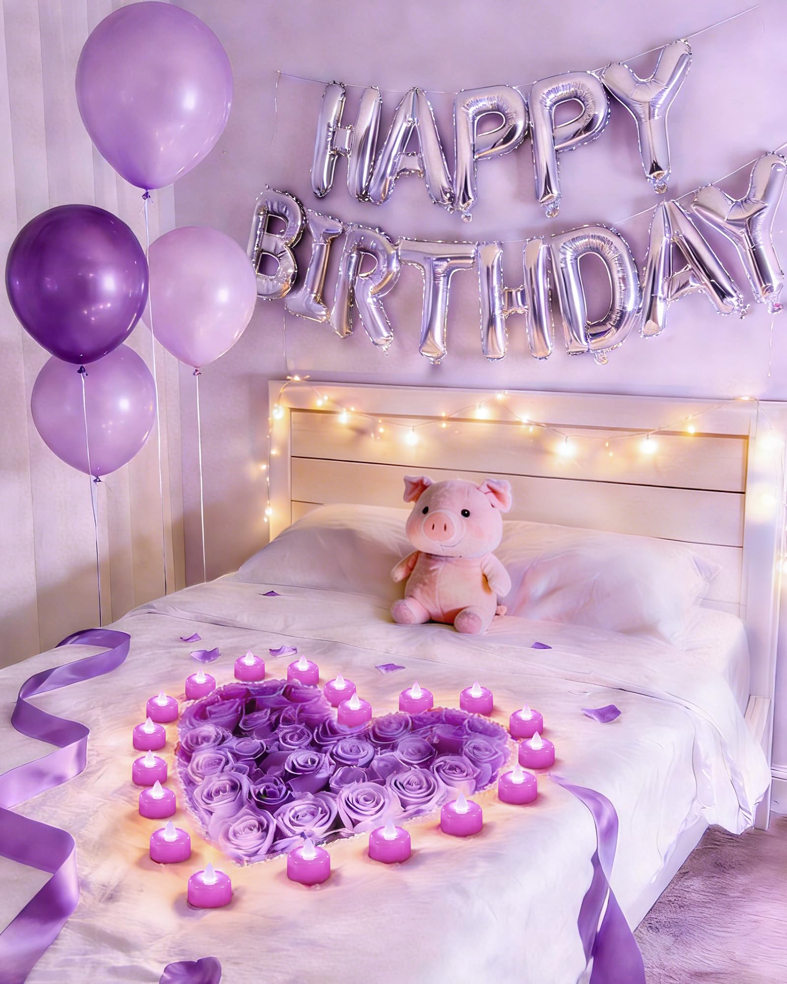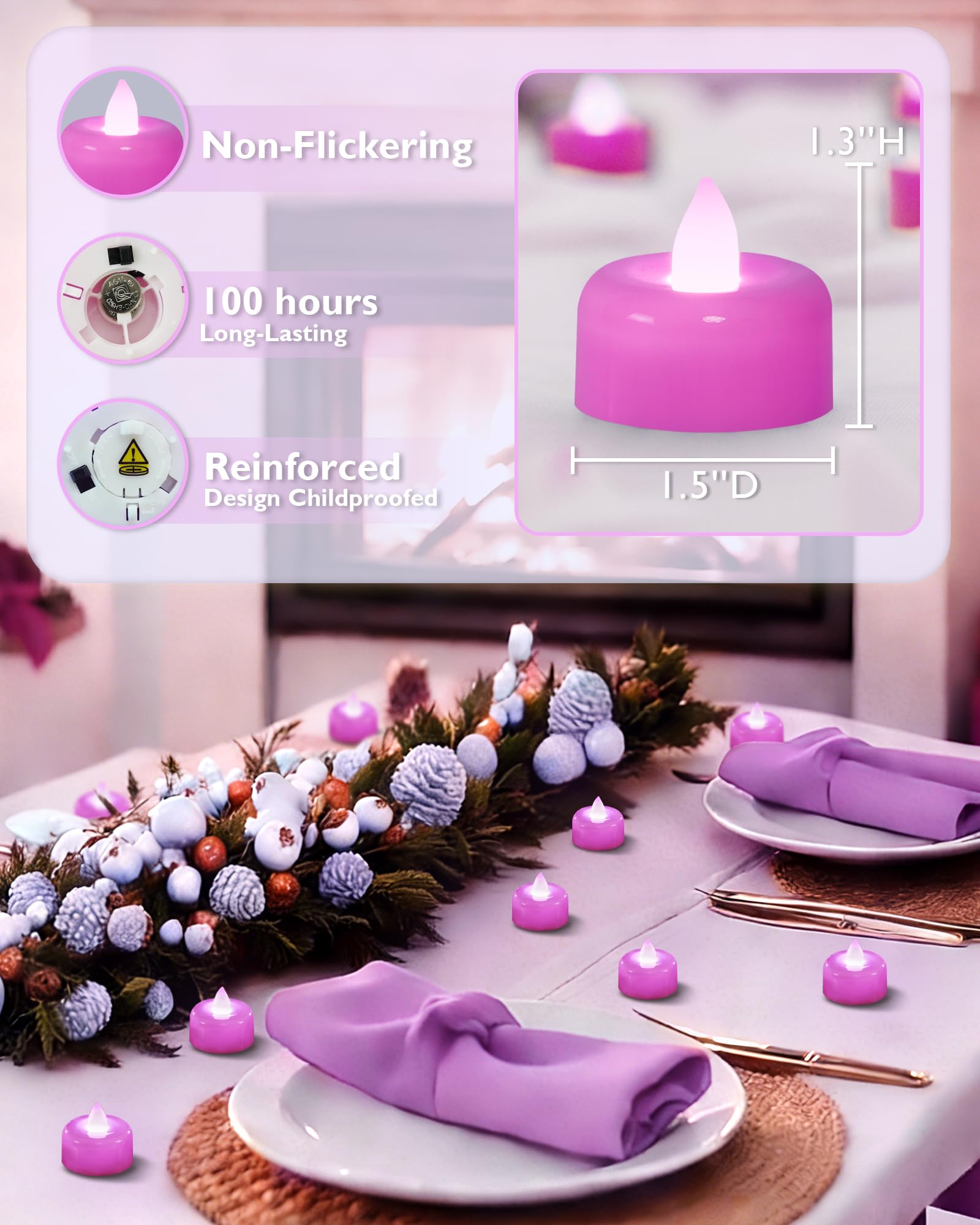 Best Decoration: Emitting charming purple white light, these battery tea lights add a romantic touch to any setting. Ideal for purple party decor, weddings, dates, Valentine's Day, proposals, table centerpieces, and special nights