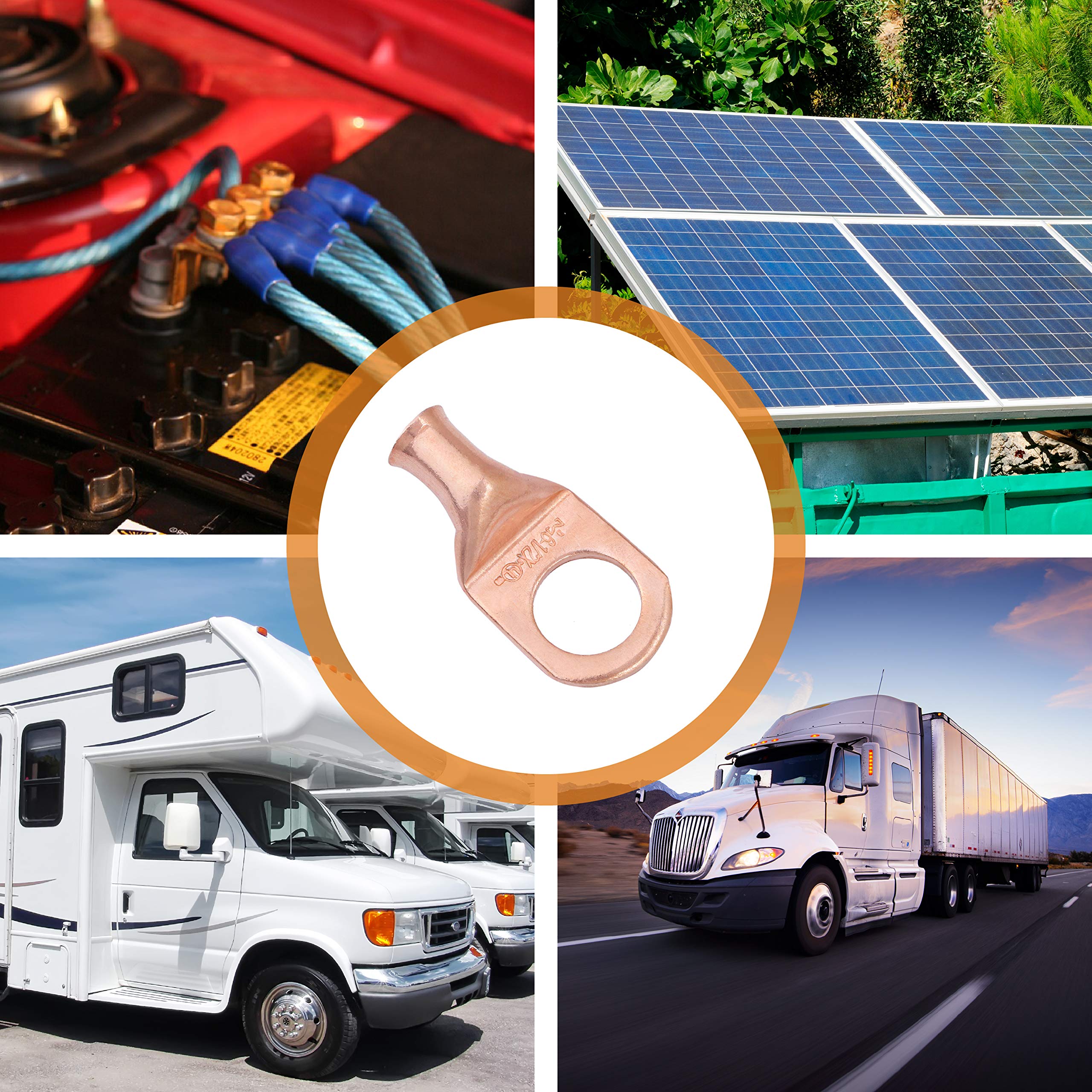 WIDE APPLICATIONS: Selterm copper lugs wire connectors have a close end pad design, keeping electrical components, battery and ring terminals safe and act as waterproof wire connectors which prevents solder from leaking during installation of lugs or while using as a heat shrink wire connectors for your battery in Solar Panel system, Golf Carts, Power Inverter, RV's, Marine, Home appliances, DIY Electrical wiring, Automotive and other equipment