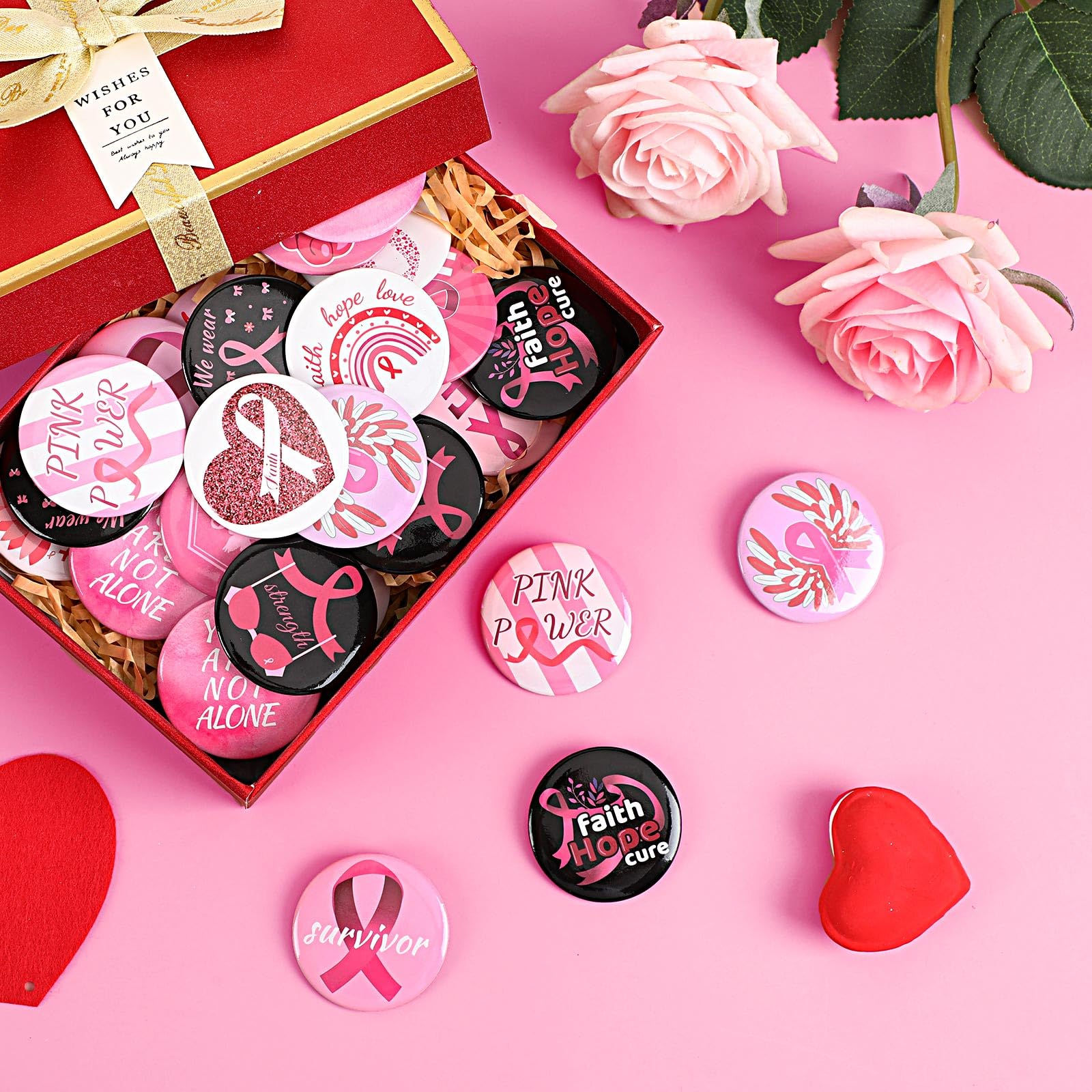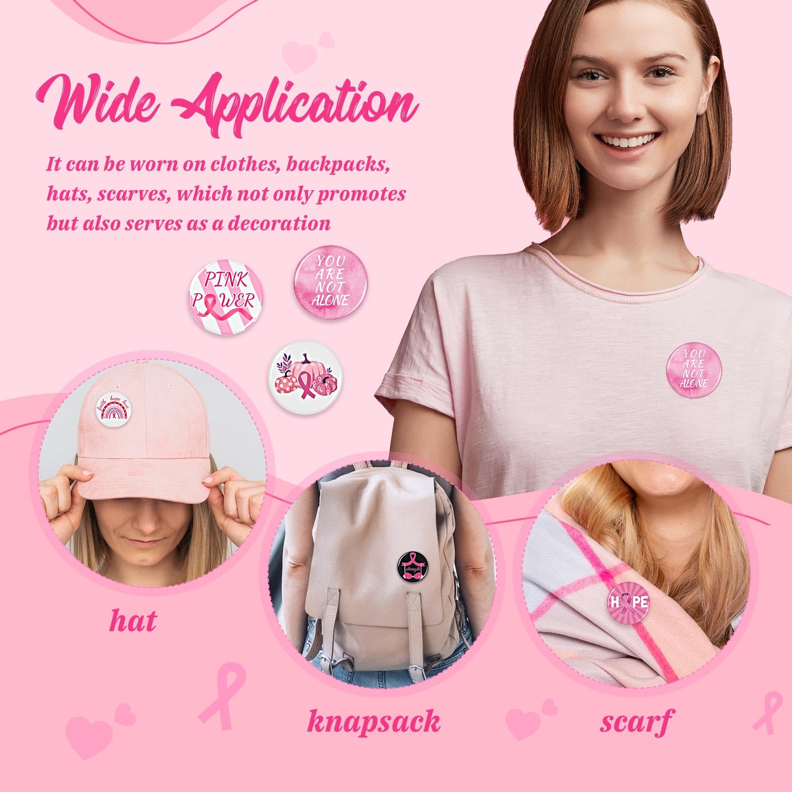 [Applicable Occasions] Our breast cancer awareness buttons pins are suitable for charity activities, community welfare events, breast cancer awareness programs, and more. Our breast cancer awareness accessories can be distributed as activity gifts to encourage group participation, promote care for women, and raise awareness about breast cancer protection