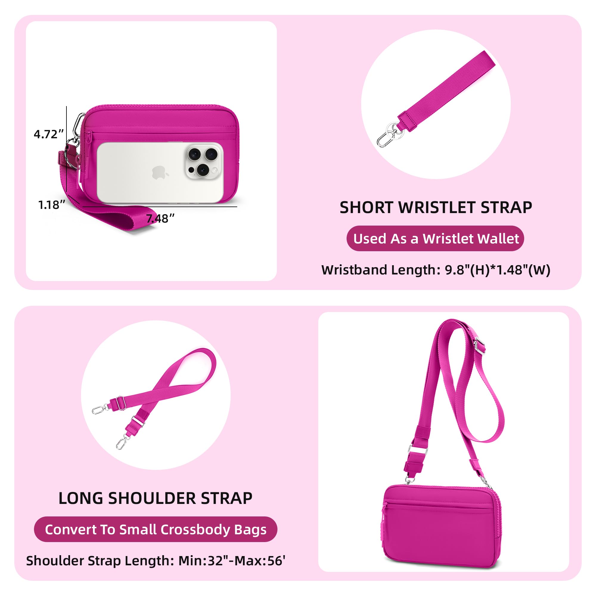 【Multi-way to wearing】:SIZE:7.48"L*4.72"W*1.18"H, WEIGHT: 0.5lbs.The sling bag can be used as sling backpack, cros body bag, chest bag and shoulder bag, making it lightweight and convenient to carry. This cross body bag has adjustable straps that can be adjusted to your needs. The adjustable strap length is32'' to 56''.