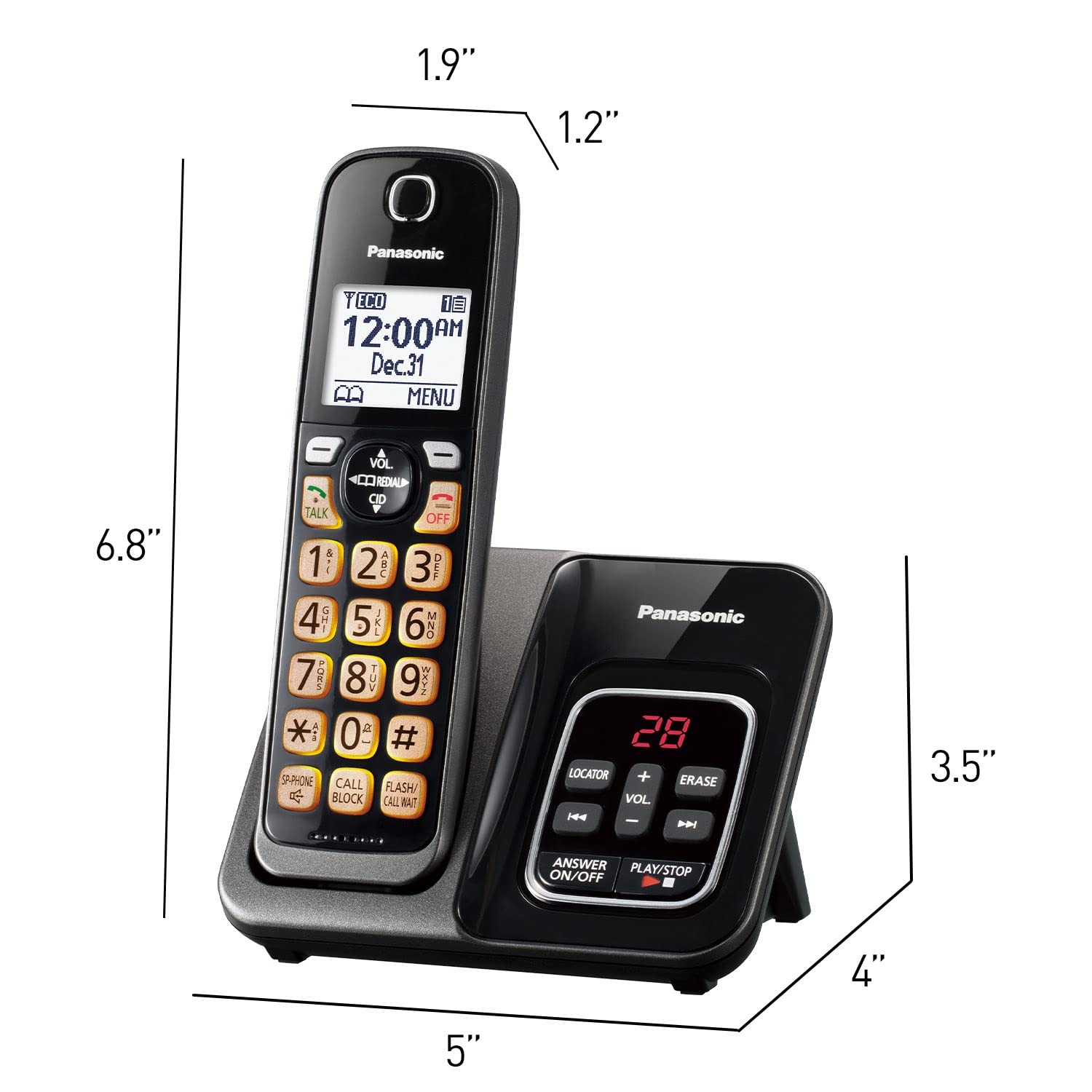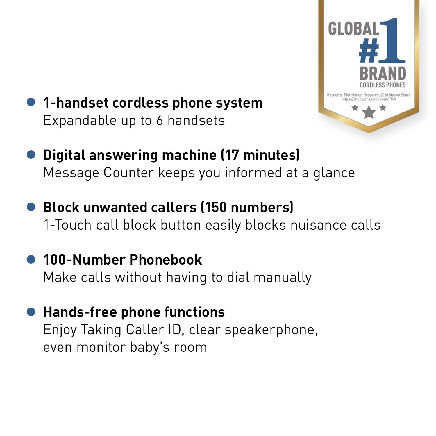 Enjoy the clarity and reliability of a landline phone, with easy-to-use features. Panasonic Cordless Phone KX-TGD630M is a 1-handset home phone system expandable up to 6 handsets, with Calling Block that makes it easy to stop up to 150 nuisance callers, plus an audible Low Battery Alert to let you know when the battery needs charging, and more. Noise Reduction Technology helps make every call as clear as possible by reducing the surrounding noise coming from the other party’s telephone, while a full range of hands-free phone functions lets you enjoy mobility and flexibility--full duplex speakerphone lets you use your cordless handset hands-free; handset can be used as a monitor for different areas of the house (such as a baby’s room) even while away from home. Customize your caller ID to display in English or Spanish and get caller announcements in that same language so you can hear who is calling, even when you’re across the room (caller ID require additional service through your local phone company).