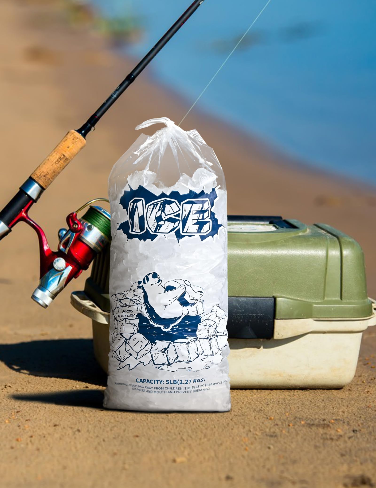 【Multiple Use Scenarios】These plastic ice bags are perfect for indoor or outdoor events including barbecues, camping, pools, parties, anniversaries, fishing, receptions, teas, and more. They are also great for any professional catering environment, including food trucks, beverage stands, food festivals, and more. The exquisite self-designed patterns can also add some sparkle to your nice relaxing moments.