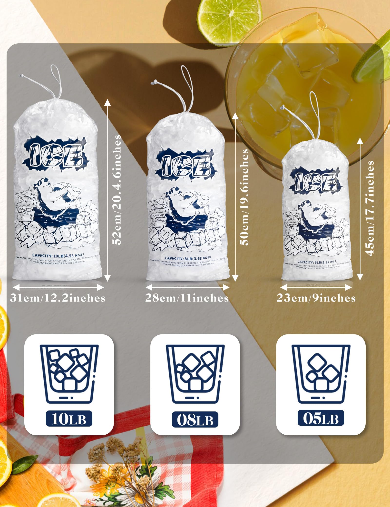 【Portable Ice Storage Bags】Ice bags for ice maker can be filled and stored in the refrigerator ice maker, ideal size for coolers when traveling. Also, these drawstring ice bags can withstand temperatures as low as -20 degrees and can be filled with ice that can be placed in the freezer for storage for emergencies.