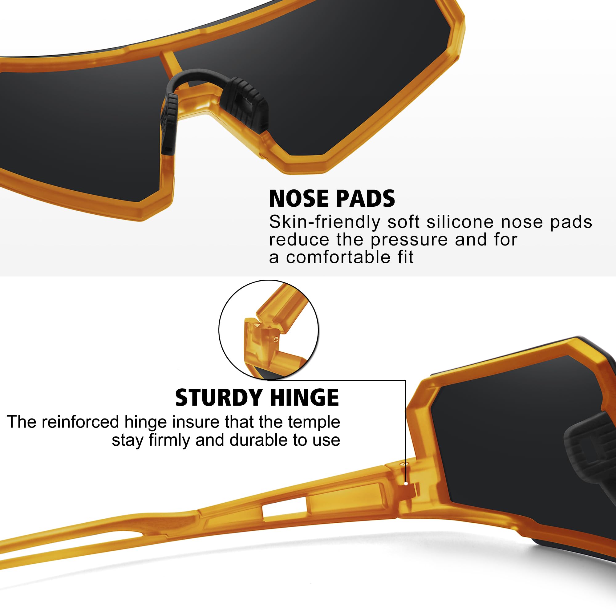 TAC HD POLARIZED LENS - 99% UV400 protection coating, blocks 99% harmful UVA & UVB Rays. Restore true color, eliminate reflected light and scattered light,make the scenery more clear and soft and protect eyes perfectly.Polycarbonate lens are impact, scratch resistant and unbreakable.
