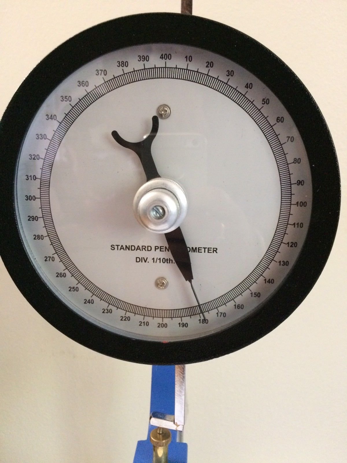 Standard Penetrometer dial is graduated in 400 1/10 and the millimeter subdivisions and the needle pointer against figures makes easy reading.
