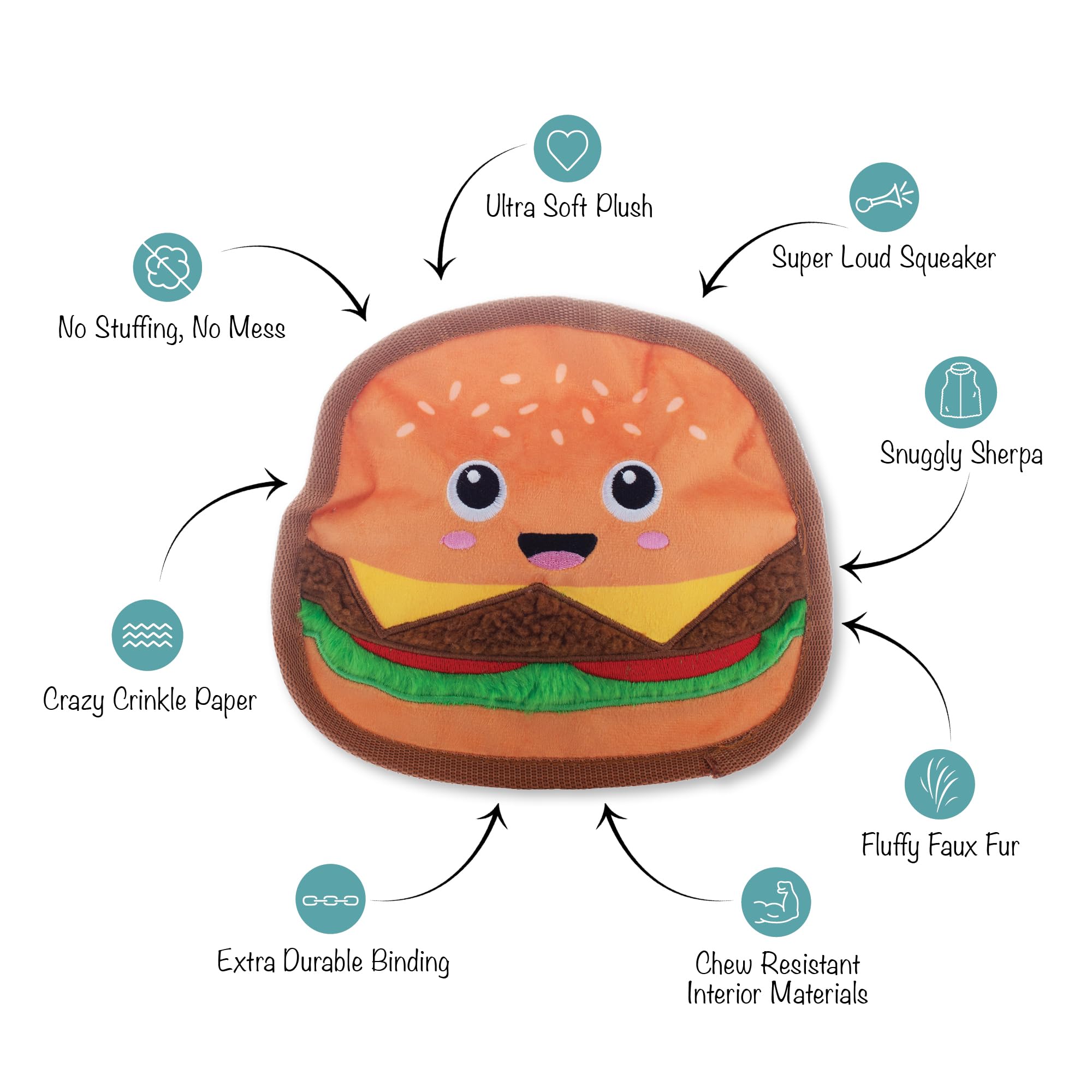 Bun Voyage! Petshop by Fringe Studio “Say Cheese!” is built to last through the toughest play dates. Made with chew resistant interior materials, extra durable binding, crazy crinkle paper and a super loud squeaker, this unfilled durable toy was designed with extended playtime in mind. It’s bound to have your pup cheesin' from ear to ear. Great for all sized dogs and good for tough chewers.