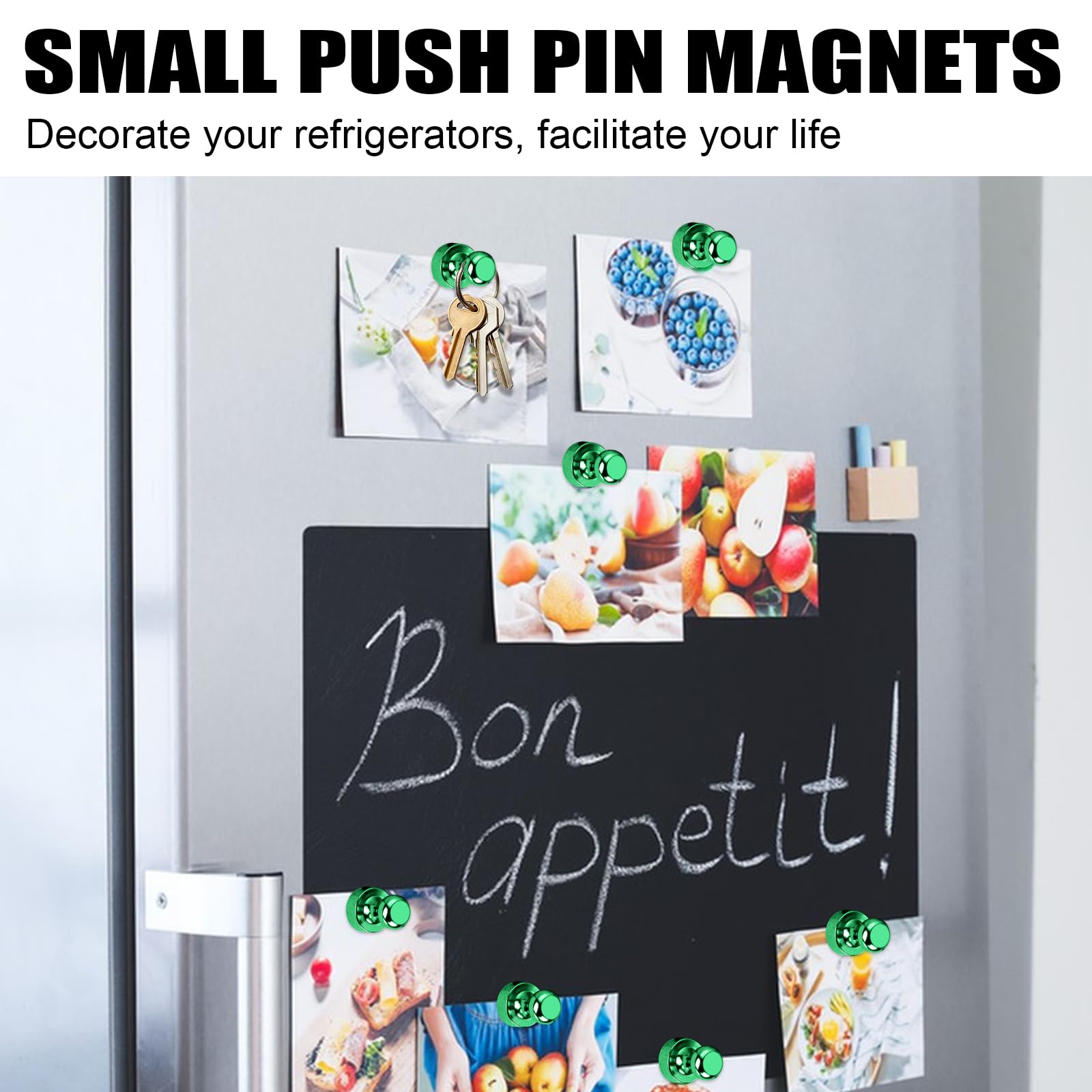 【WIDE APPLICATION】The push pin magnets play a great role in daily scenarios. The small neodymium magnets are suitable for whiteboard, refrigerator, locker,office,school, home,kitchen,jewelry hangers and key holders. Note:not suitable for glass board!
