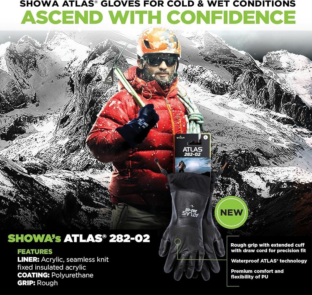 The SHOWA TEMRES 282-02 gloves are the ultimate breathable, waterproof solution for extreme winter conditions. Featuring a micro-porous polyurethane coating and an insulated acrylic fleece liner, these gloves keep your hands warm and dry while allowing sweat and moisture to escape. Unlike traditional rubber gloves that turn stiff in the cold, the TEMRES 282-02 remains flexible in temperatures as low as -58°F (-50°C), ensuring your dexterity is never compromised. The integrated drawstring cuff seals out snow and debris, while the rough-textured grip provides superior control on wet tools, ski poles, and climbing gear. With a seamless, ergonomic design that prevents hand fatigue, these gloves are built for commercial fishing, cold storage, or ice climbing. Redefine your winter performance with the professional-grade protection of the TEMRES 282-02.