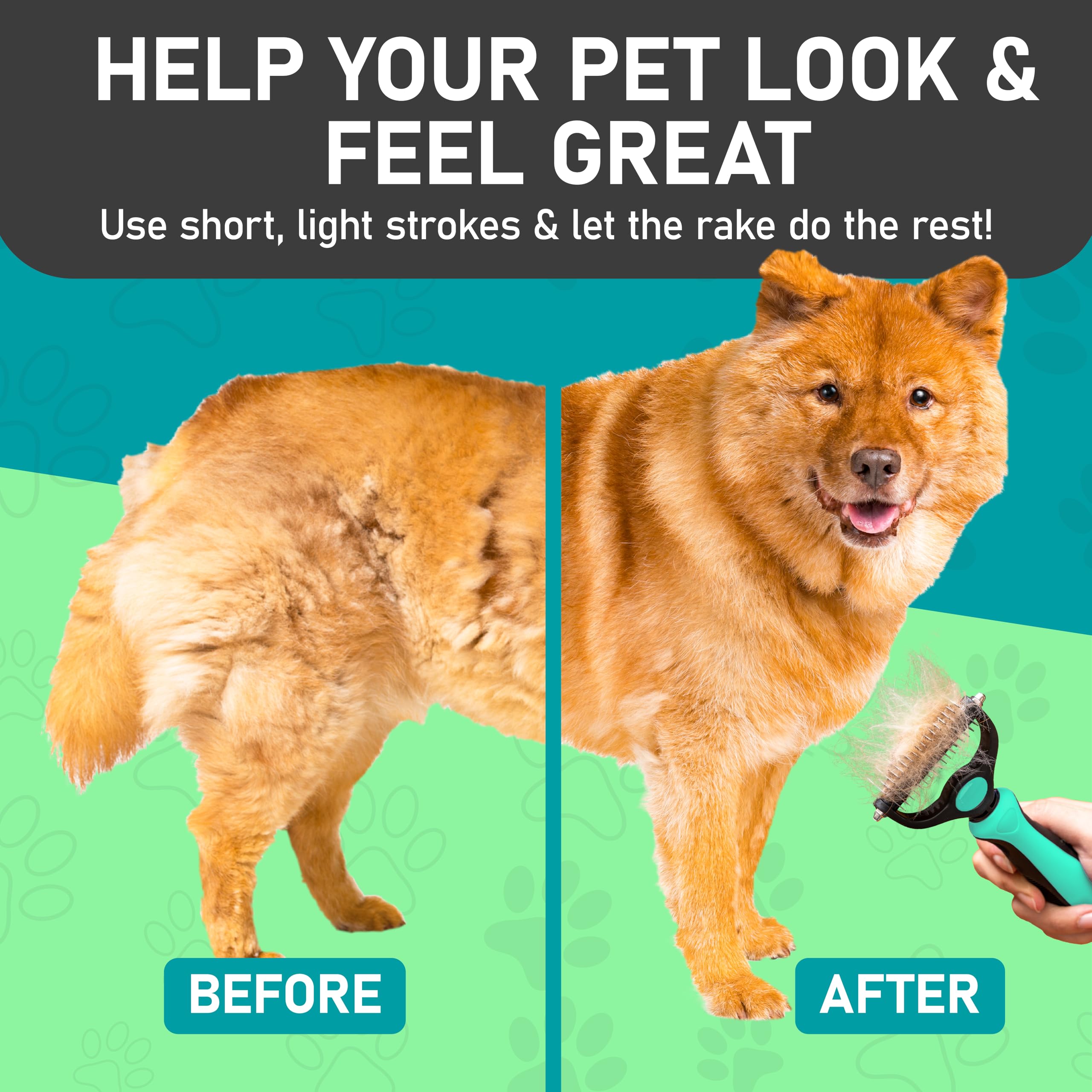 EFFECTIVE DESHEDDING TOOL & COMFORTABLE TO USE: The perfect cat brush or dog grooming brush solution for pets with thick fur or dense double coats. This grooming rake for dogs is designed with a lightweight, comfortable, non-slip rubber handle to keep the brush from moving around as you groom your pet.