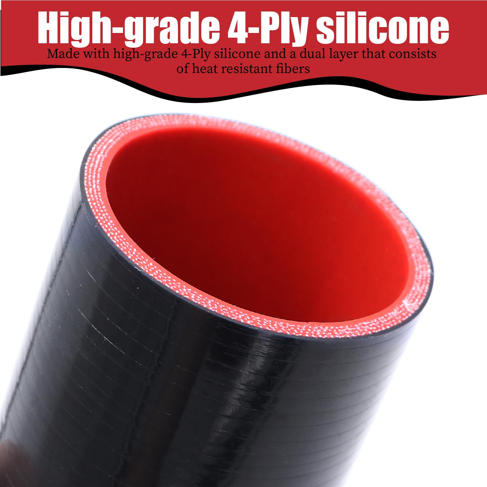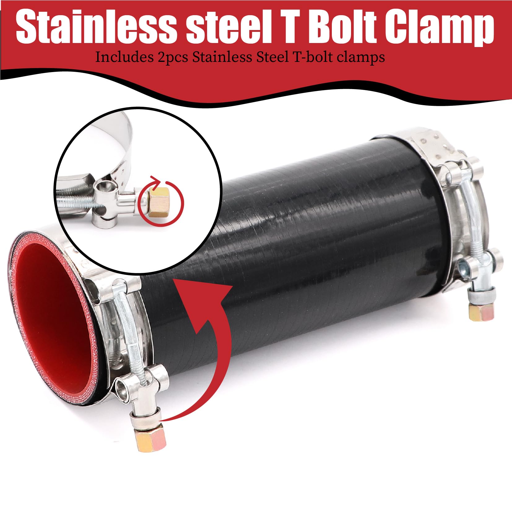 Silicone 4-Ply Straighte silicone hose with 2pcs stainless steel T-Bolt Clamp.