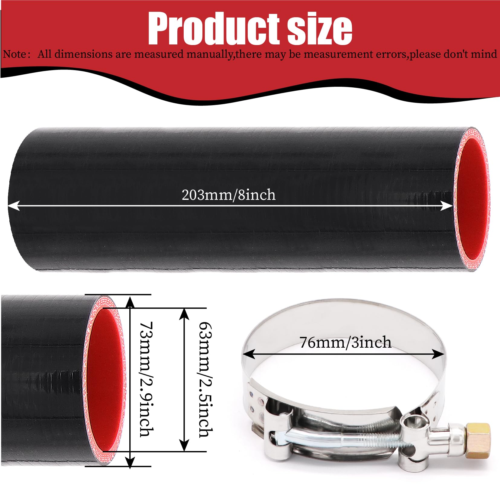 Specifications:Hose Inner diameter :2.5"(63mm). Length 8inch(203mm),Thickness 5mm