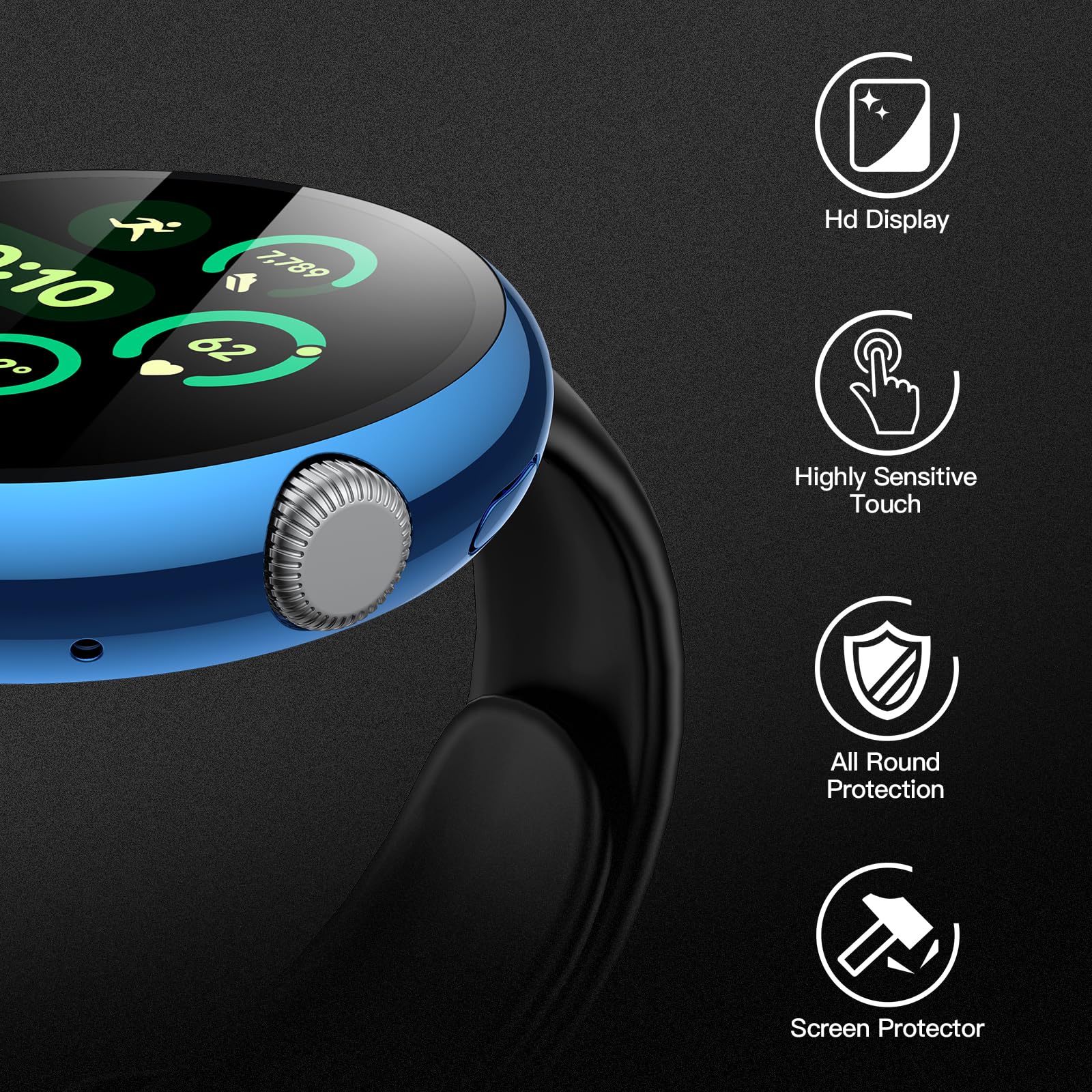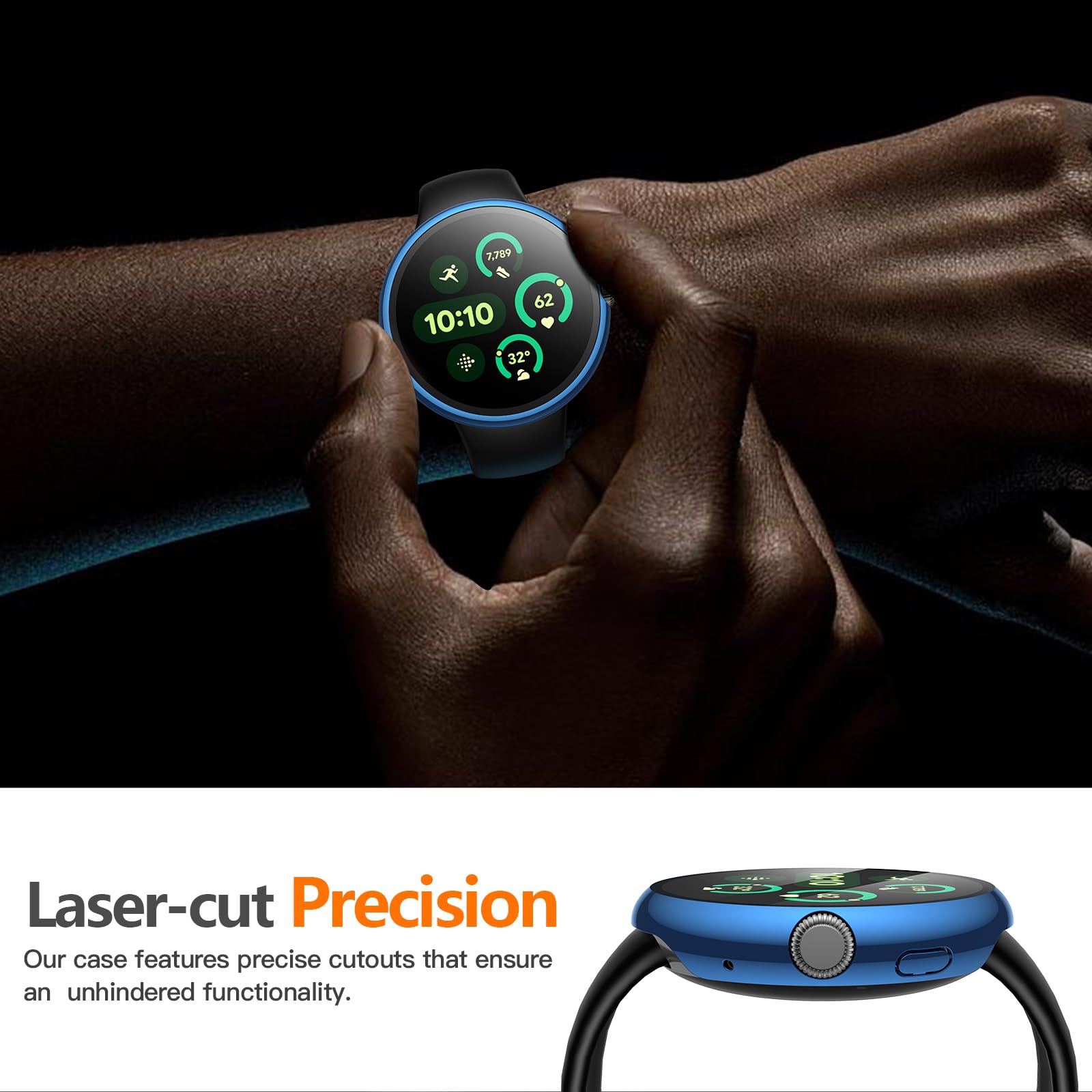 Full Protection: This comprehensive case combines a high quality hard PC frame with an ultra-thin tempered glass screen protector in a robust 2-in-1 design without adding any extra bulk or weight. It offers complete protection for your Google watch’s screen and curved edges, guarding against dust and fingerprints