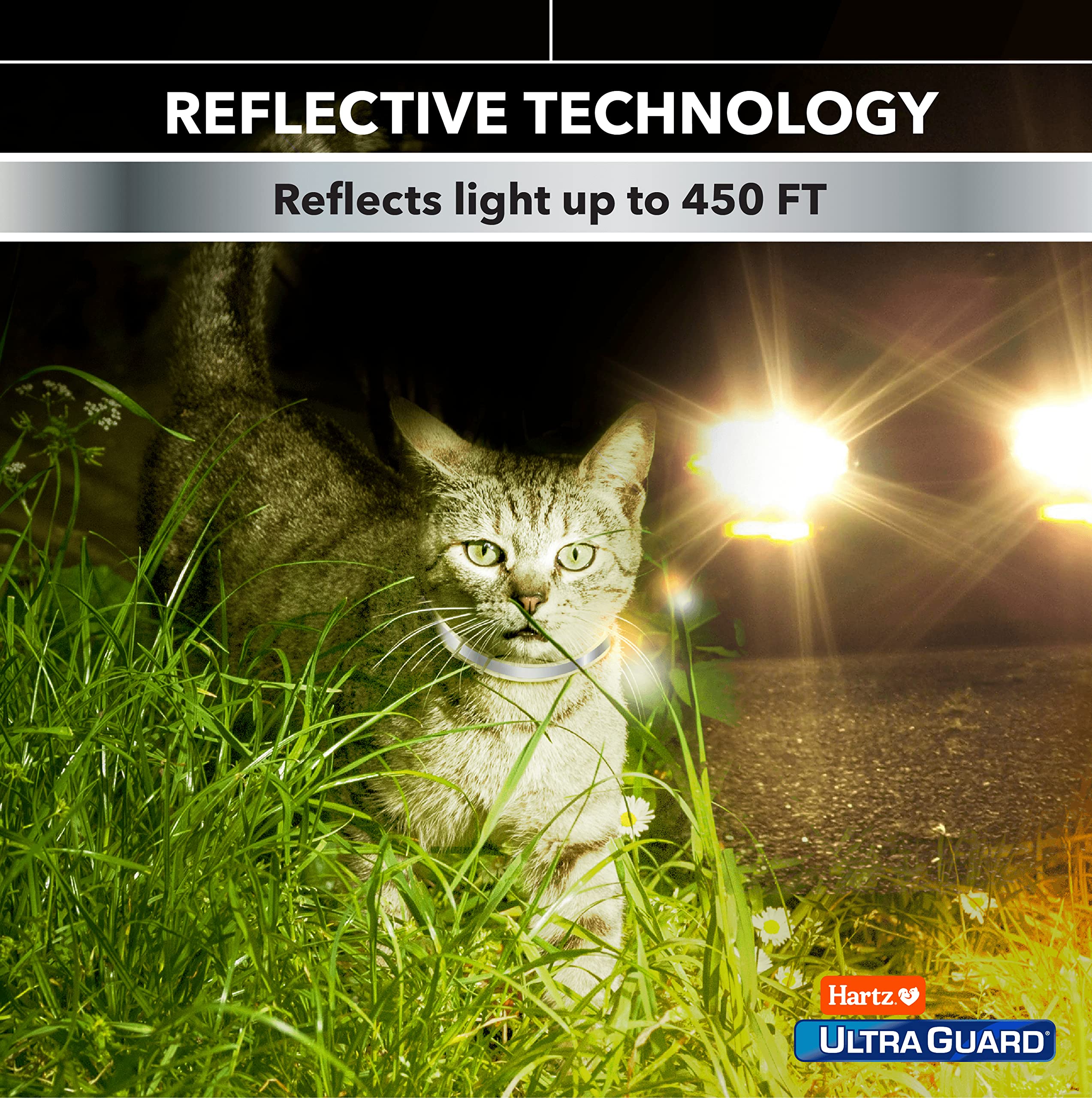 Tell pesky parasites to ‘bug off’ with the Hartz UltraGuard Plus Reflective Flea & Tick Collar for Cats and Kittens. This parasite pummeling collar kills and repels both fleas and ticks for 7 months and also exterminates and prevents flea eggs from hatching for over half the year - stopping the flea life cycle and inhibiting reinfestation. The water resistant design remains effective even after getting caught in the rain. Additionally, the Reflect-X Shield reflects direct light for up to 450 feet for an added dimension of nighttime safety. Also features a breakaway safety release. For continuous flea and tick protection from head to tail, replace the collar every 7 months. For use on kittens 12 weeks of age and older. Directions: Remove collar from package, unroll and stretch to activate insecticide generator. Do not use on kittens under 12 weeks of age. Do not unroll collar until ready to use. Place the collar around the cat’s neck, adjust for proper fit and buckle in place. The collar must be worn loosely to allow for growth of the cat and to permit the collar to move about the neck. Generally, a properly fitted collar is one that, when fastened, will snugly slide over the cat’s head. Leave 2 or 3 inches on the collar for extra adjustment and cut off and dispose of the extra length. Consult a veterinarian before using this product on debilitated, aged or medicated pets. Sensitivity may occur after using any pesticide product for pets. Some animals may become irritated by the collar if it is applied too tightly. If this occurs, loosen the collar. If irritation continues, remove the collar and bathe your cat with mild soap and rinse with large amount of water. If signs continue, consult a veterinarian immediately. Do not use this product on cats simultaneously or within 30 days before or after treatment of other flea and tick products. However, flea and tick collars may be replaced immediately.