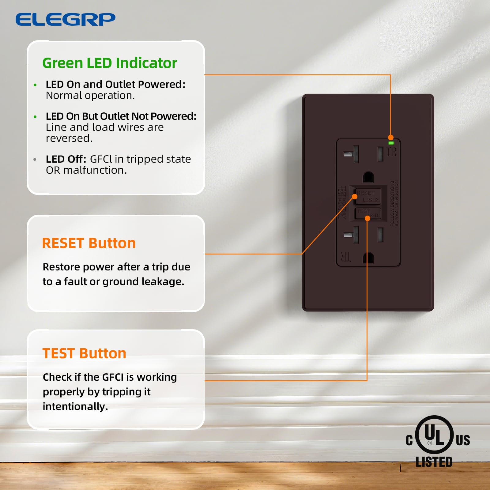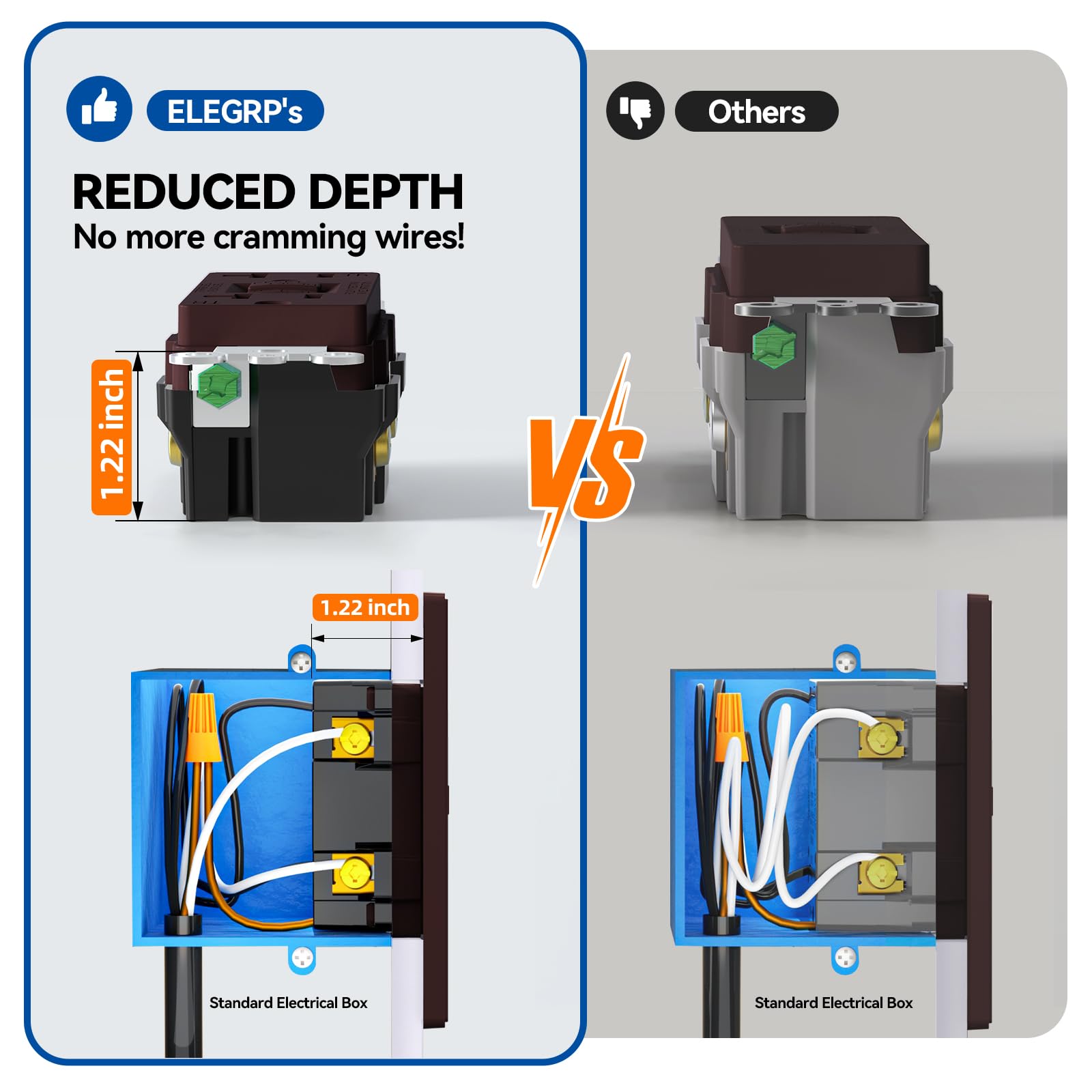 ✅【UL Certified & 3-Year Product Support】ELEGRP GFCI outlets rigorously tested to meet or exceed UL943 & UL498 standards for safety and reliability. Backed by 3 years of product support, ensuring long-term performance and customer satisfaction.