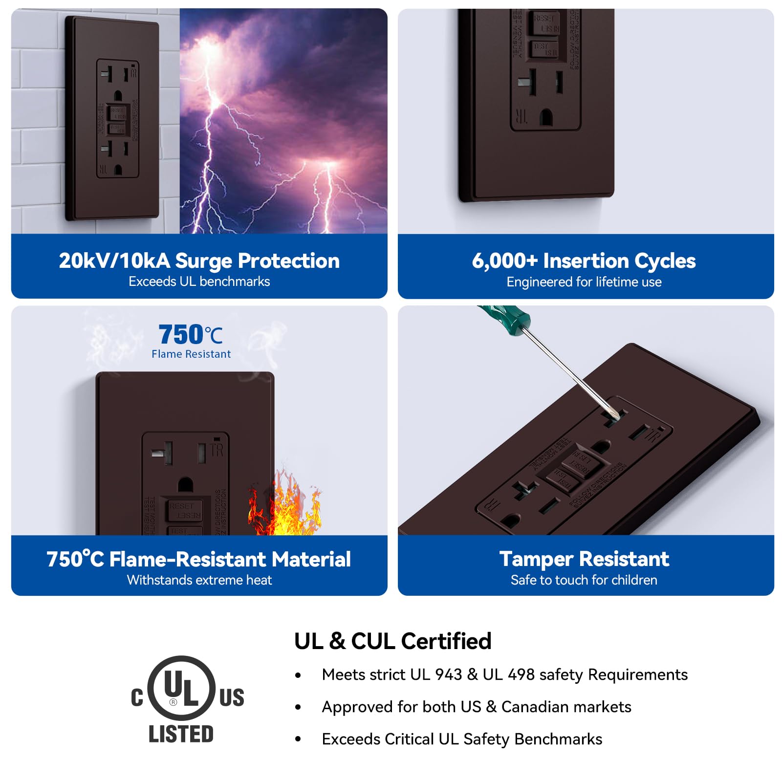 ✅【Durable and Ultra-Safe Design】Built with premium high-impact resistant thermoplastic materials. Endurance-tested over 6,000 times—twice the UL requirement. Features advanced safety features like 6kV surge protection, Reset-Disable, and Reversed Wiring Prevention to ensure long-lasting performance and maximum protection.