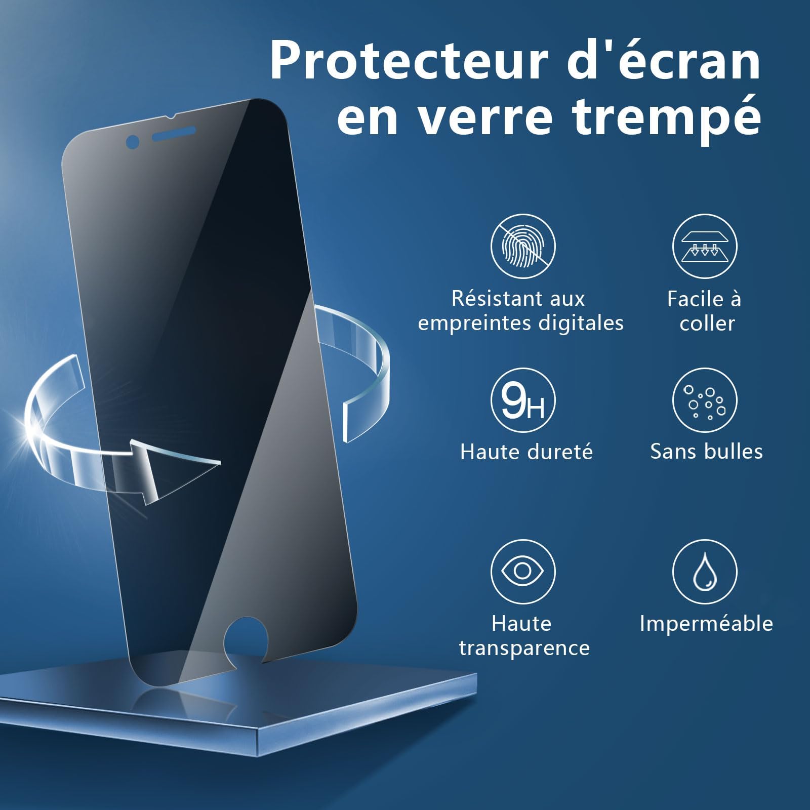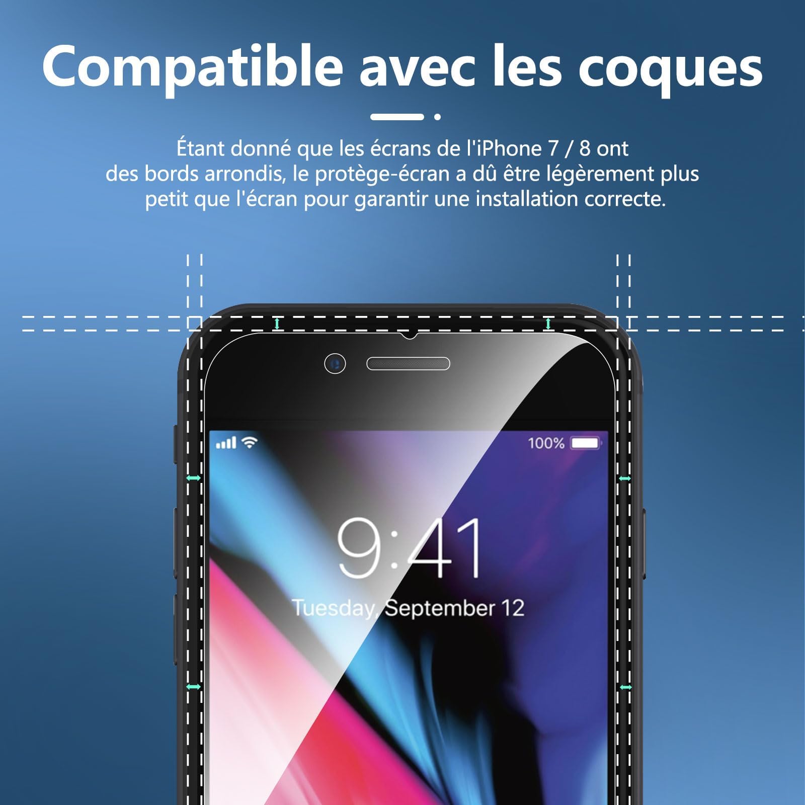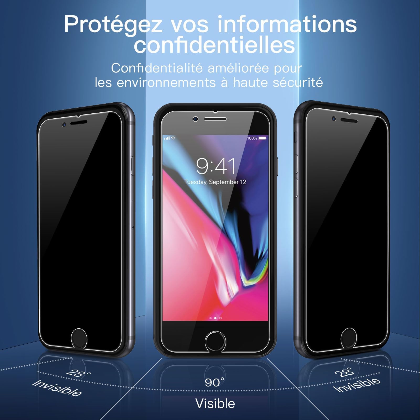 Set of 3 Anti-Spy Tempered Glasses for iPhone 7/8 (4.7"), 9H hardness, resistance to scratches.