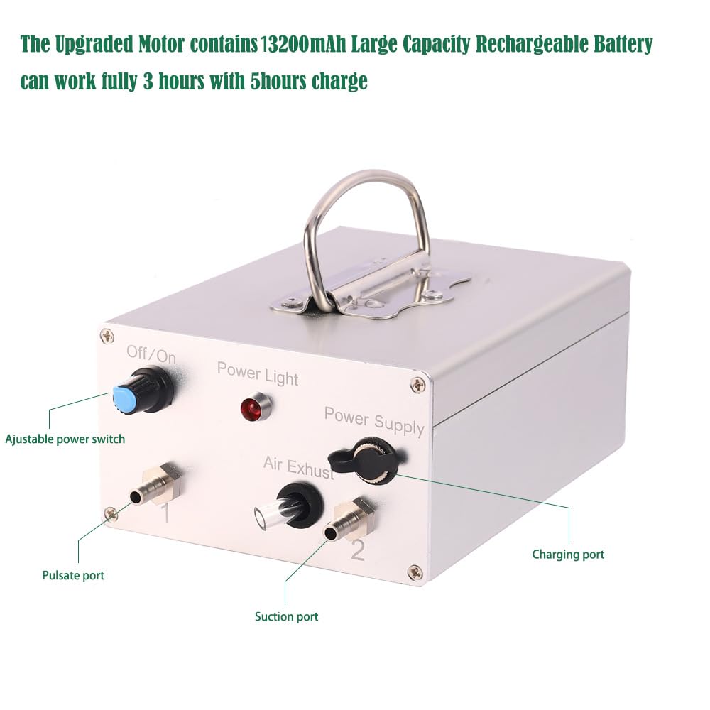【Upgraded Battery Model】Pulsation cycle is about 40~46 times per minute, can saves at least one-half of the labor and time. The milk container is equipped with a check valve that prevents the milk flow into the pump when the milk is full. 13200 mAh Large Capacity Upgraded Rechargeable Battery,it can work fully 3 hours with 5hours charge.Also you can adjust the working frequency of the motor through the knob, to reduce the uncomfortable feeling of cows or goats at high intensity of milk sucking.