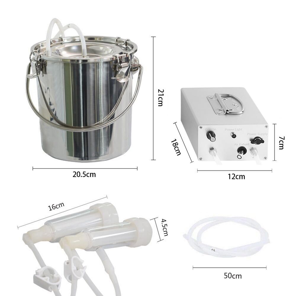 【Folding Handle for Moving Around】The milk bucket is made of premium 304 stainless steel, easy to clean. Folding handle are on 2 sides and inside. Super convenient to carry and pour out milk. 【Easy To Set Up & Clean Up】Quick installation, plugged in to use, easy to clean with 2 brushes, suitable for people with the least technical experience, can be used in farm, family, etc.