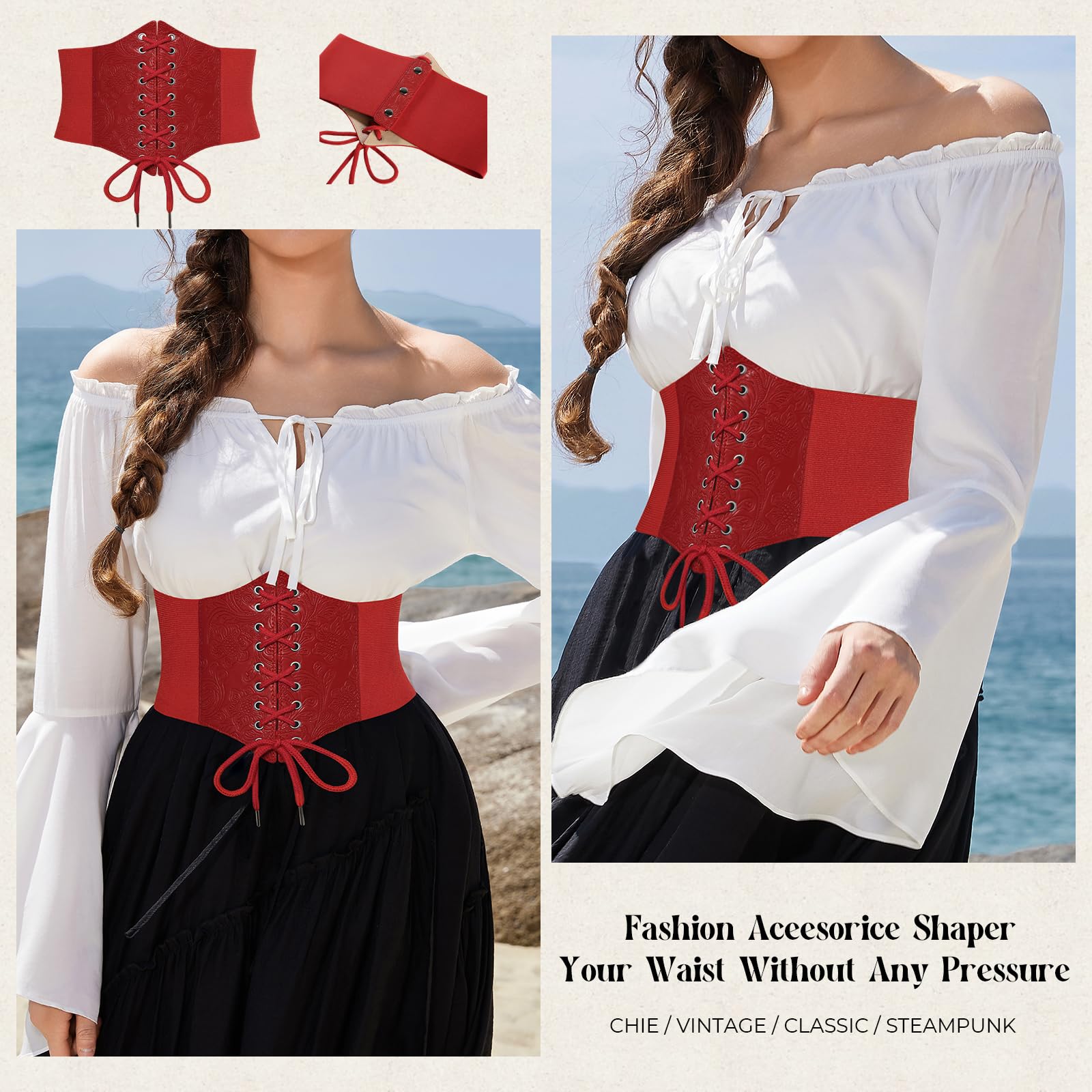 The lace up belt can shape your waist well, great for cosplay and casual wear.