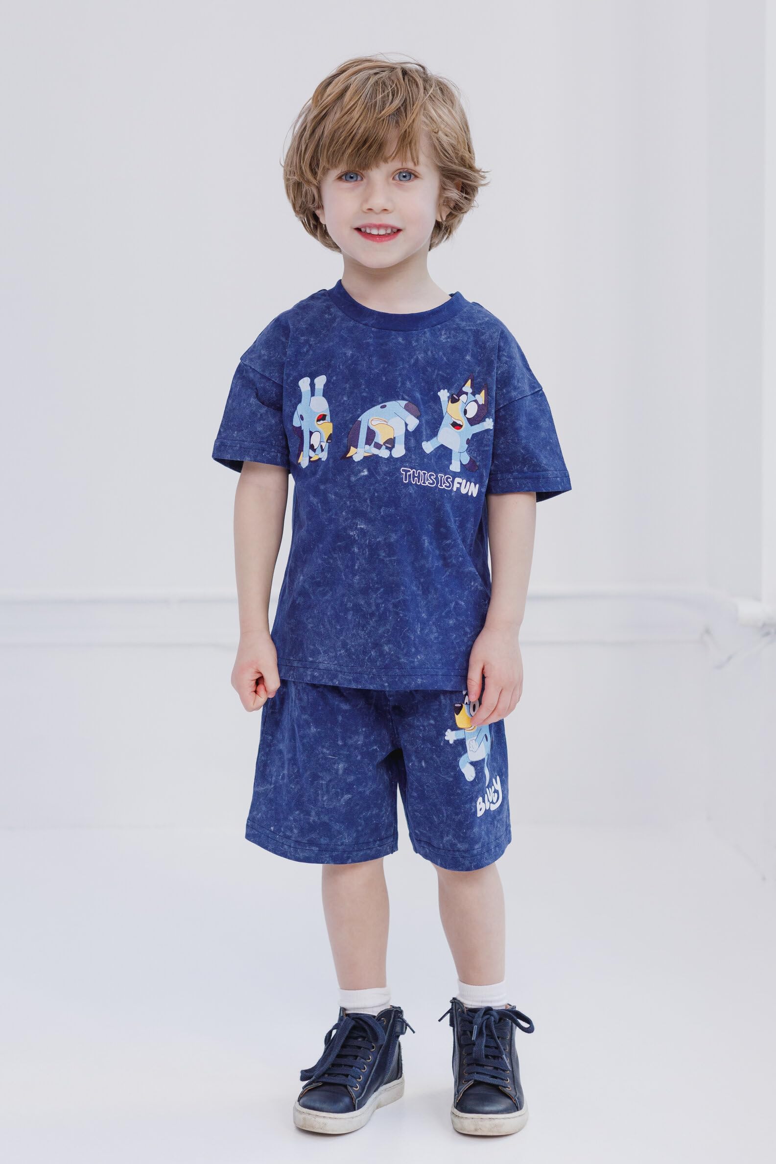 Officially licensed Bluey toddler boys short sleeve graphic tee shirt and shorts